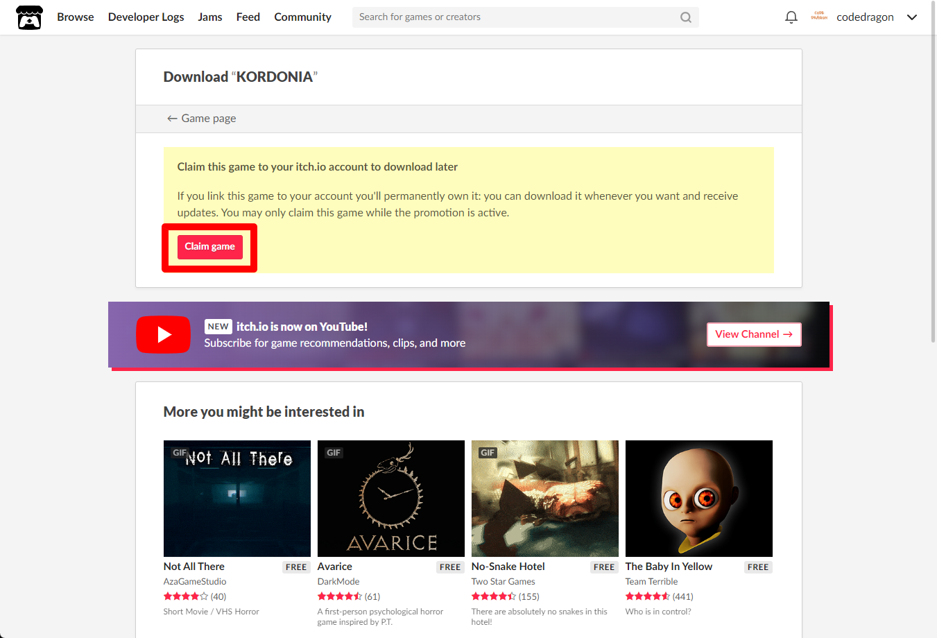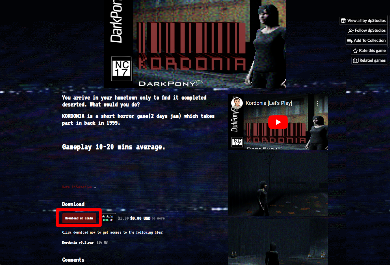 "KORDONIA" 페이지에 있는 [Download or claim]을 클릭합니다.