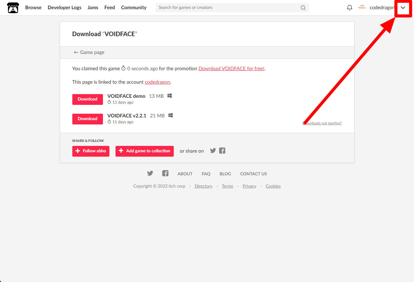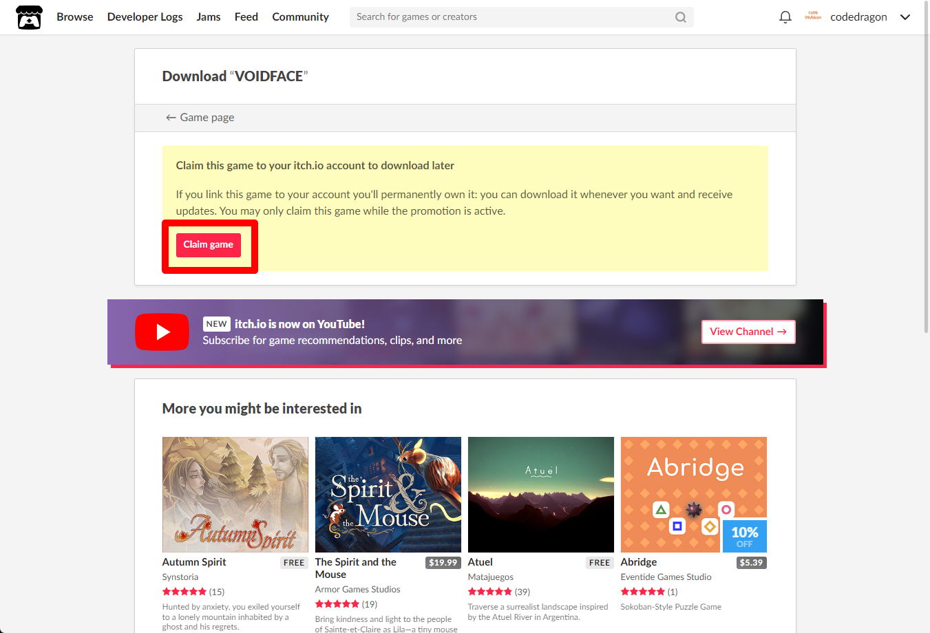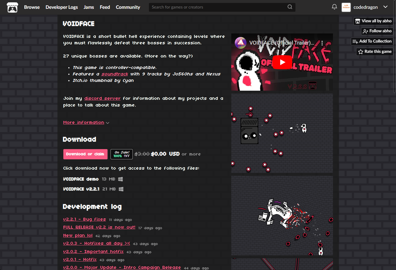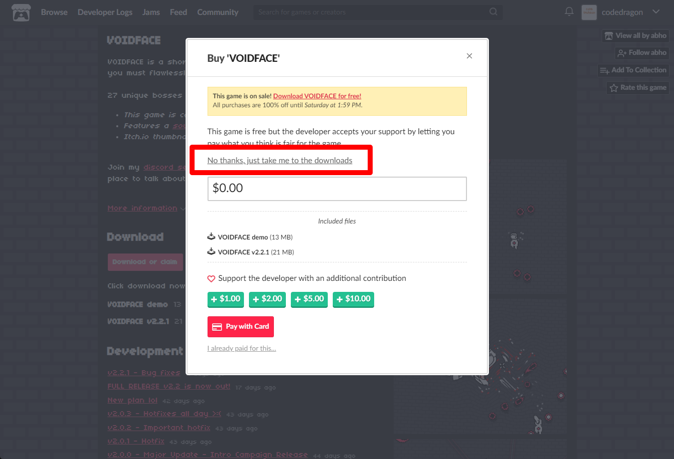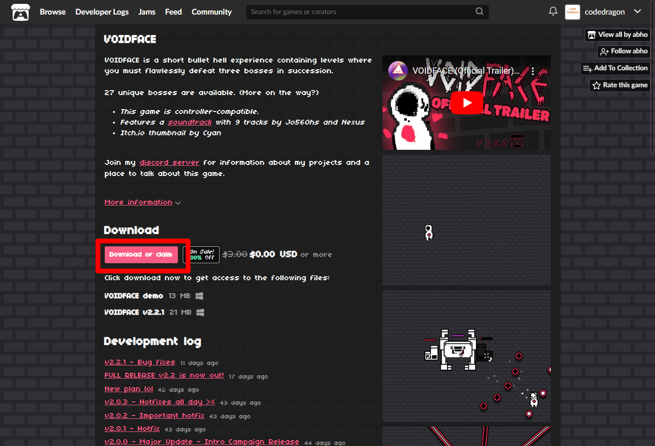 "VOIDFACE" 페이지에 있는 [Download or claim]을 클릭합니다.