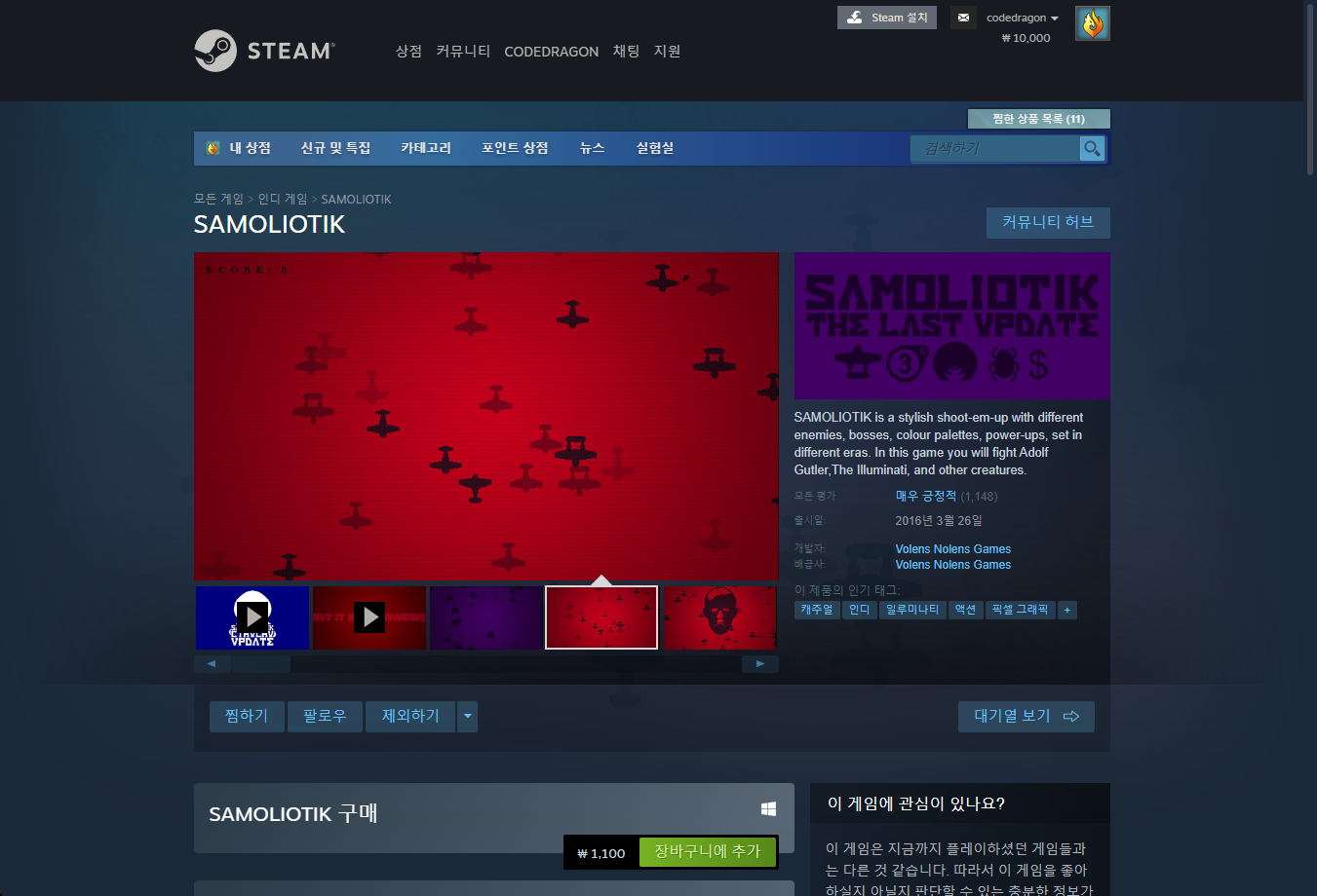 ₩1,100 -> ₩ 0(Free) SAMOLIOTIK 사모리오틱 무료 - 인디갈라 indiegala 무료 소장 기회 기간한정 indiegala FREE GAME, Limited time