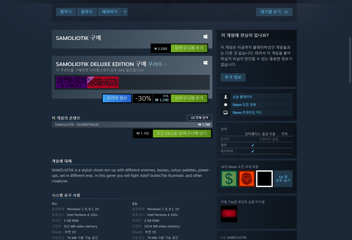 "SAMOLIOTIK" 게임 보유 확인