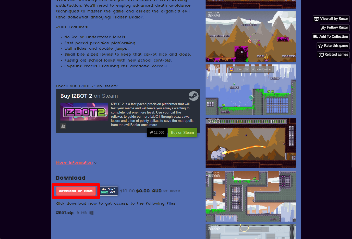 "iZBOT" 페이지에 있는 [Download or claim]을 클릭합니다.