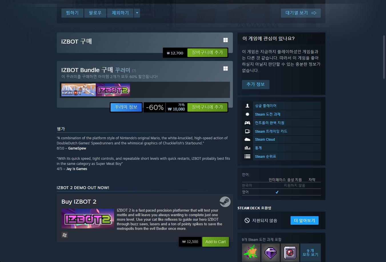 "iZBOT" 스팀 Steam 페이지