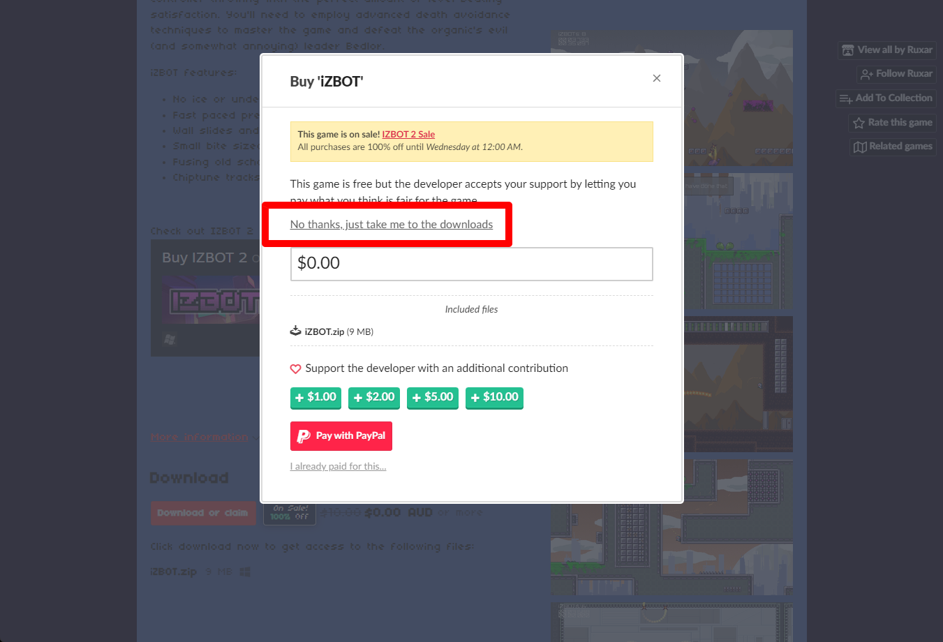 ₩12,700 -> ₩0(Free) iZBOT 아이즈봇 무료로 받기 영구소장 - itch.io 잇치 닷 아이오 한시적 무료 소장하기