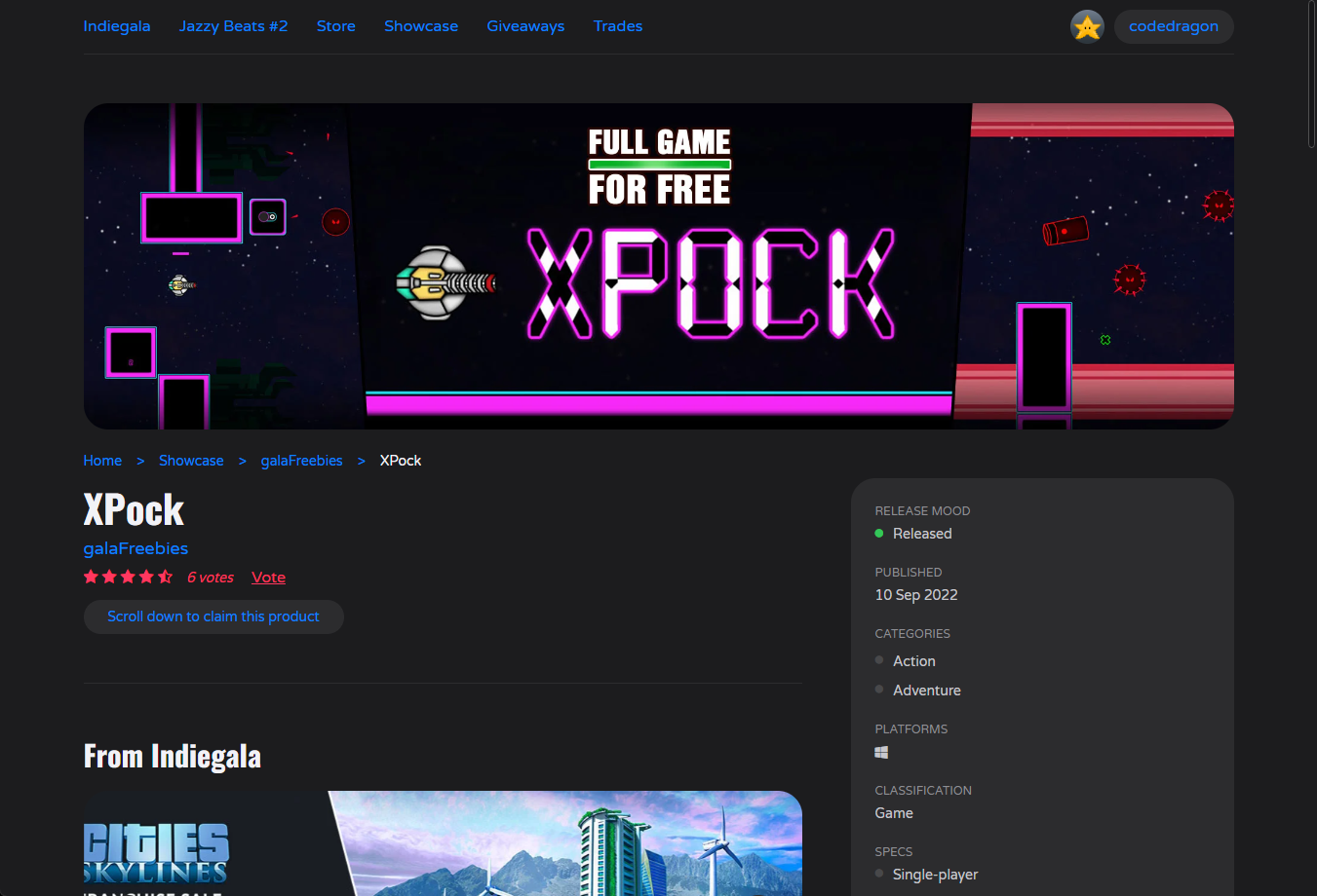 ₩12,500 -> ₩ 0(Free) Xpock 엑스팍 무료 - 인디갈라 indiegala 무료 소장 기회 기간한정 indiegala FREE GAME, Limited time