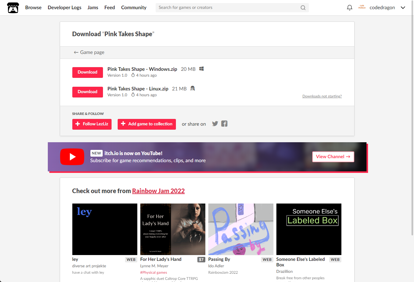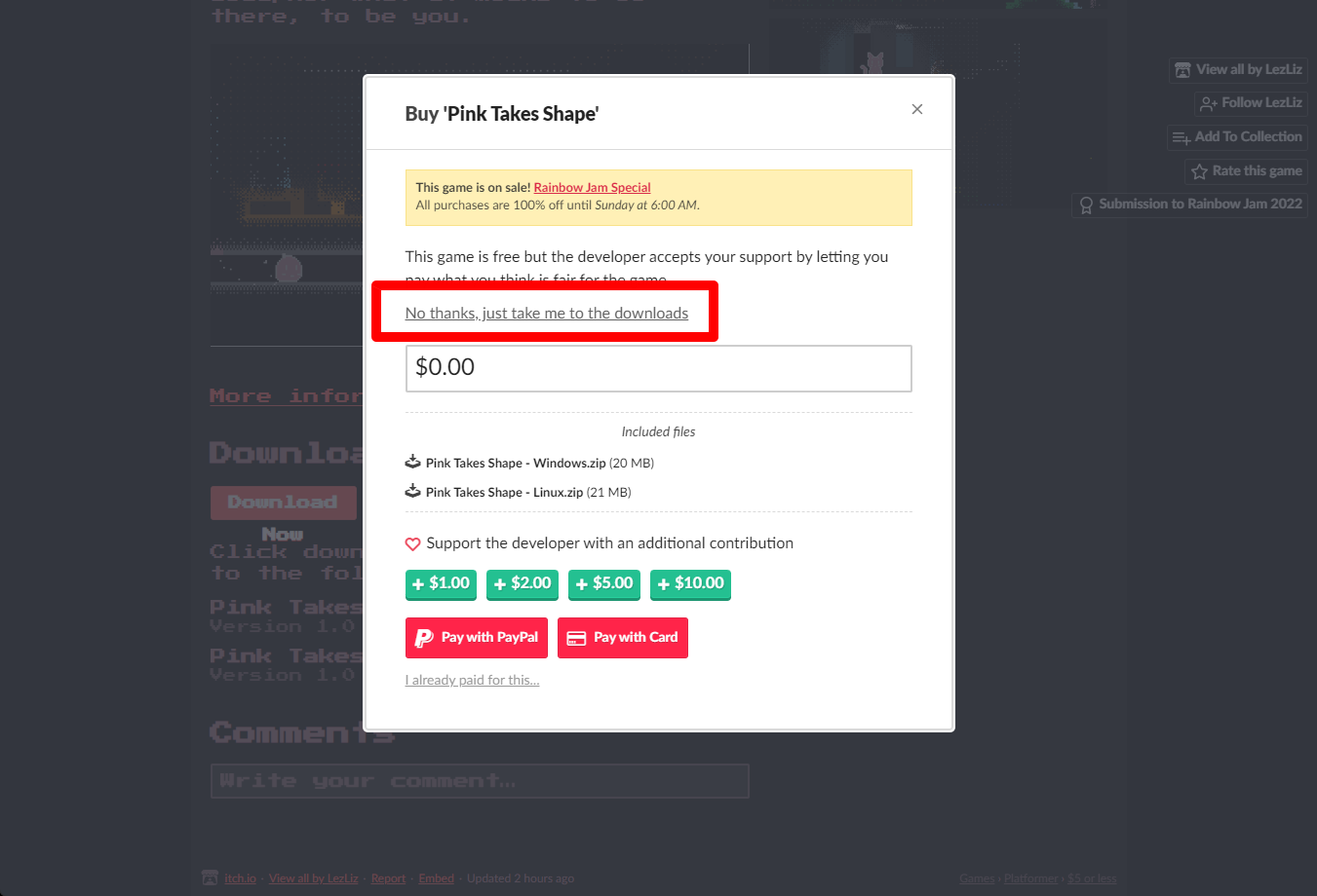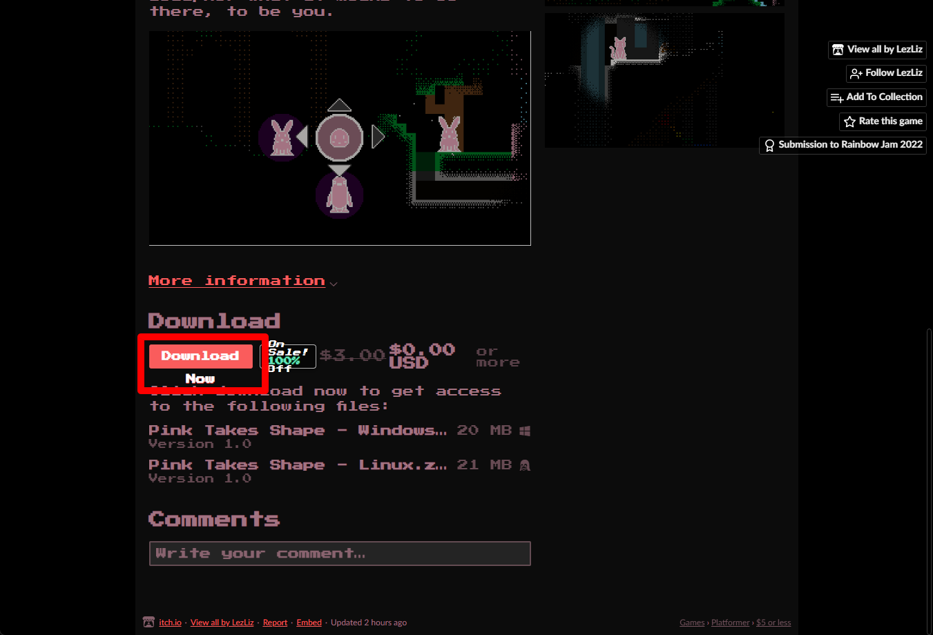 "Pink Takes Shape" 해당 항목에 있는 [Download] 버튼을 클릭하면 게임의 설치파일을 다운받을 수 있습니다.