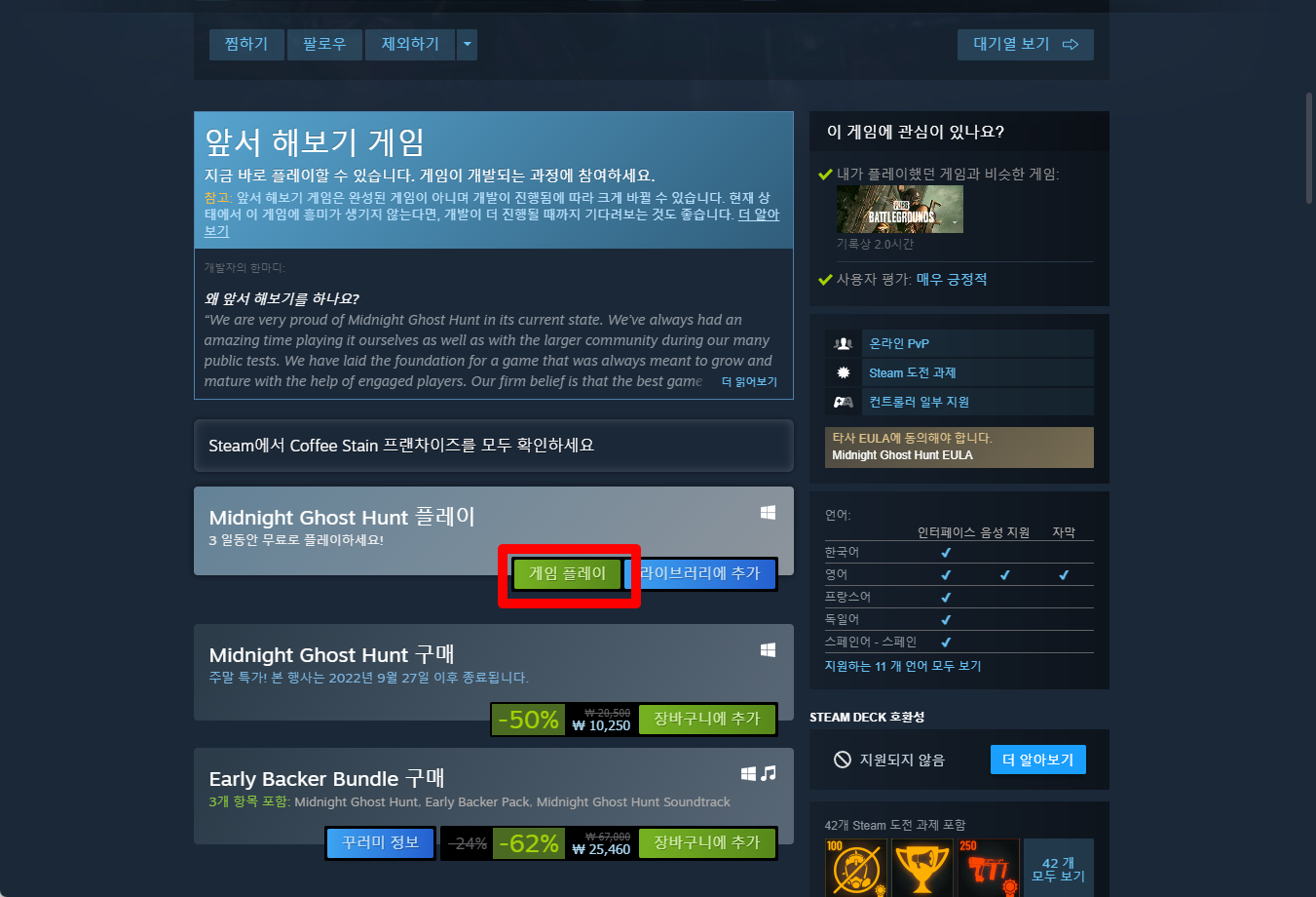 스팀에서 무료 플레이후 구매를 결정 할 수 있습니다.