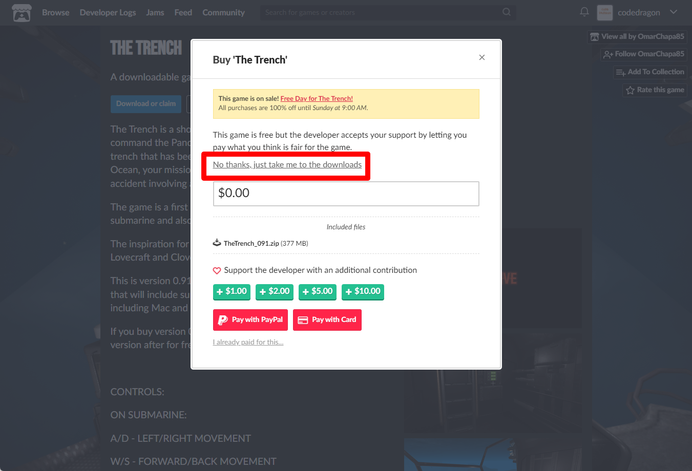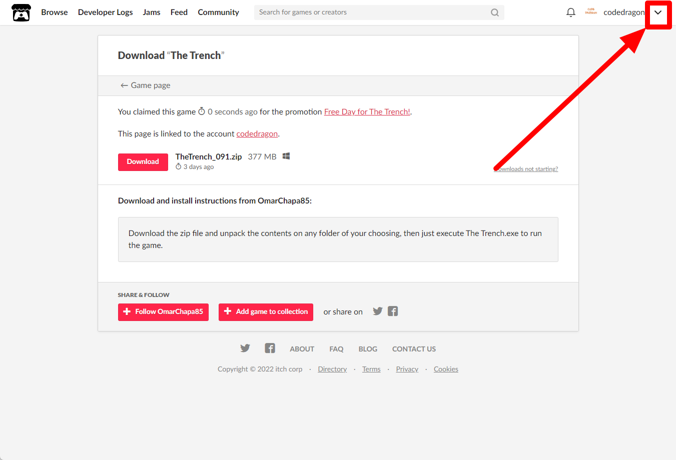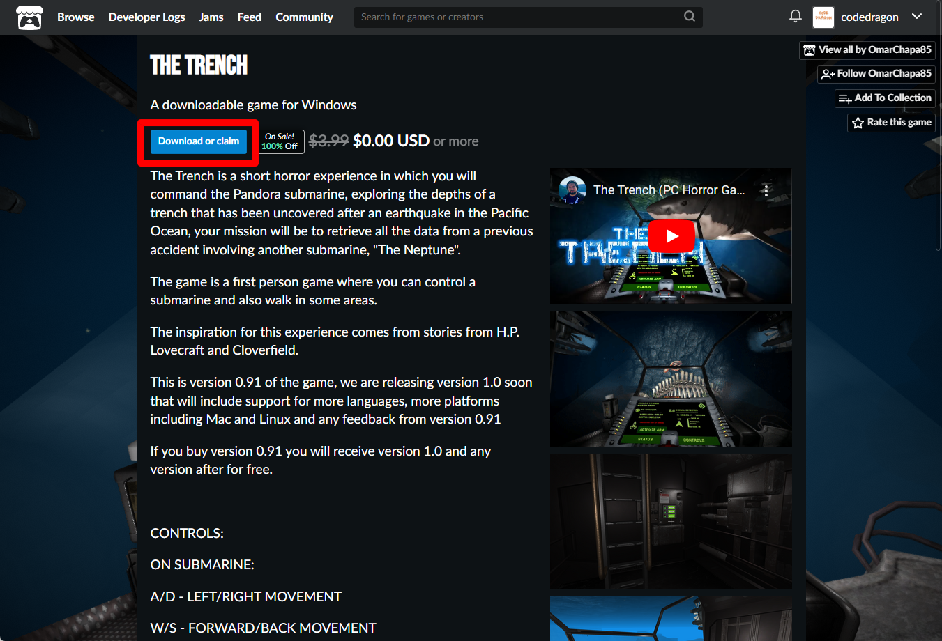 "The Trench" 페이지에 있는 [Download or claim]을 클릭합니다.