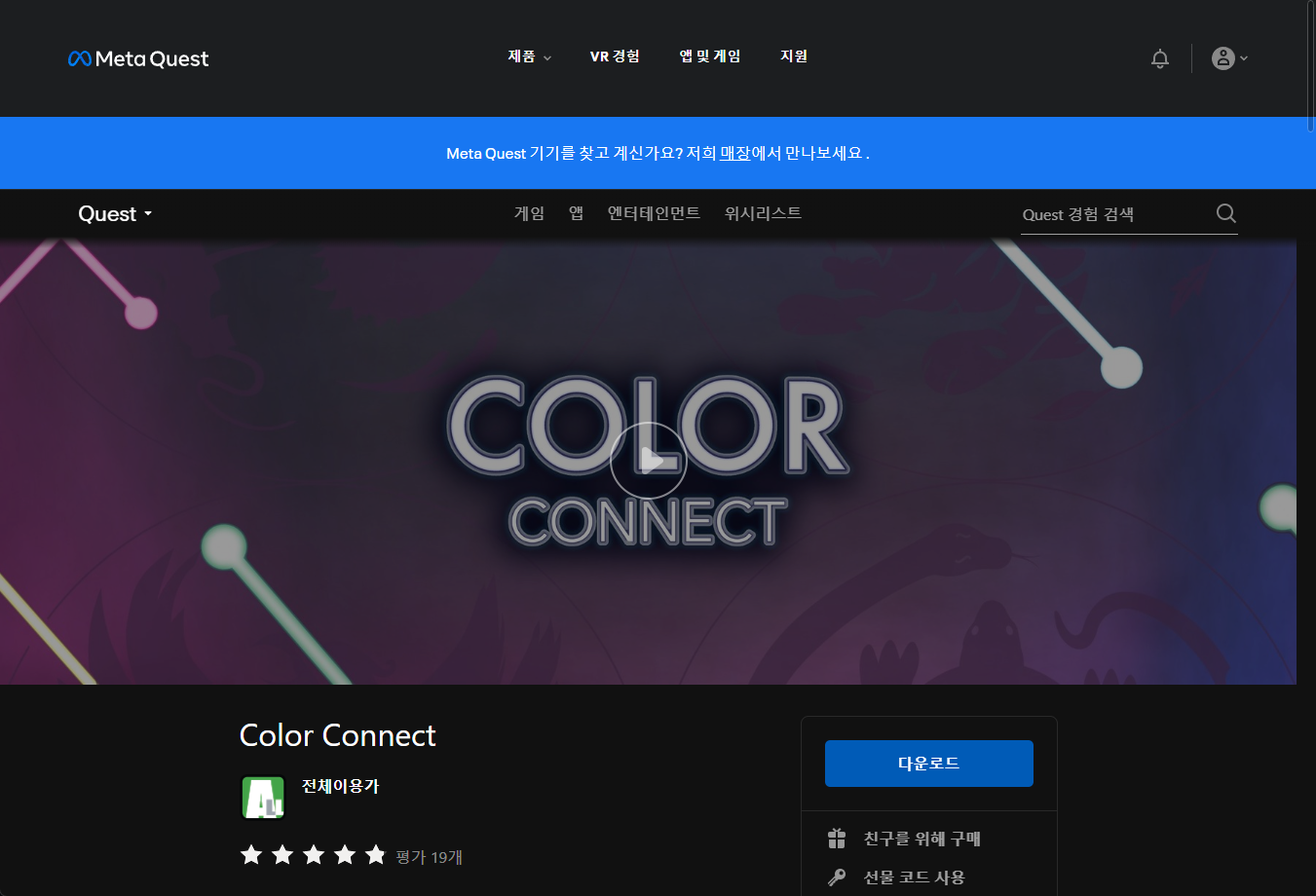 "Color Connect" 게임페이지에 있는 [다운로드] 버튼 클릭합니다.
