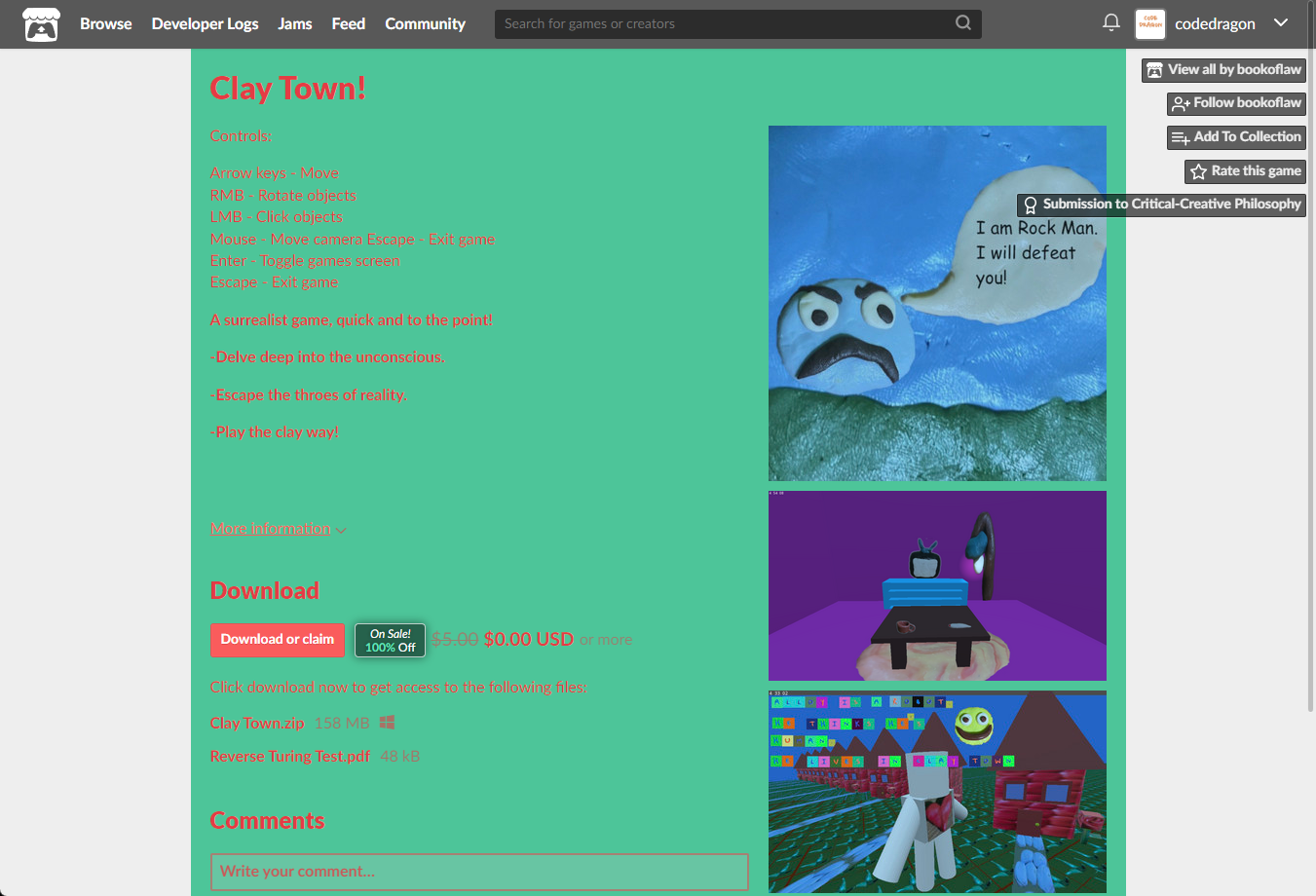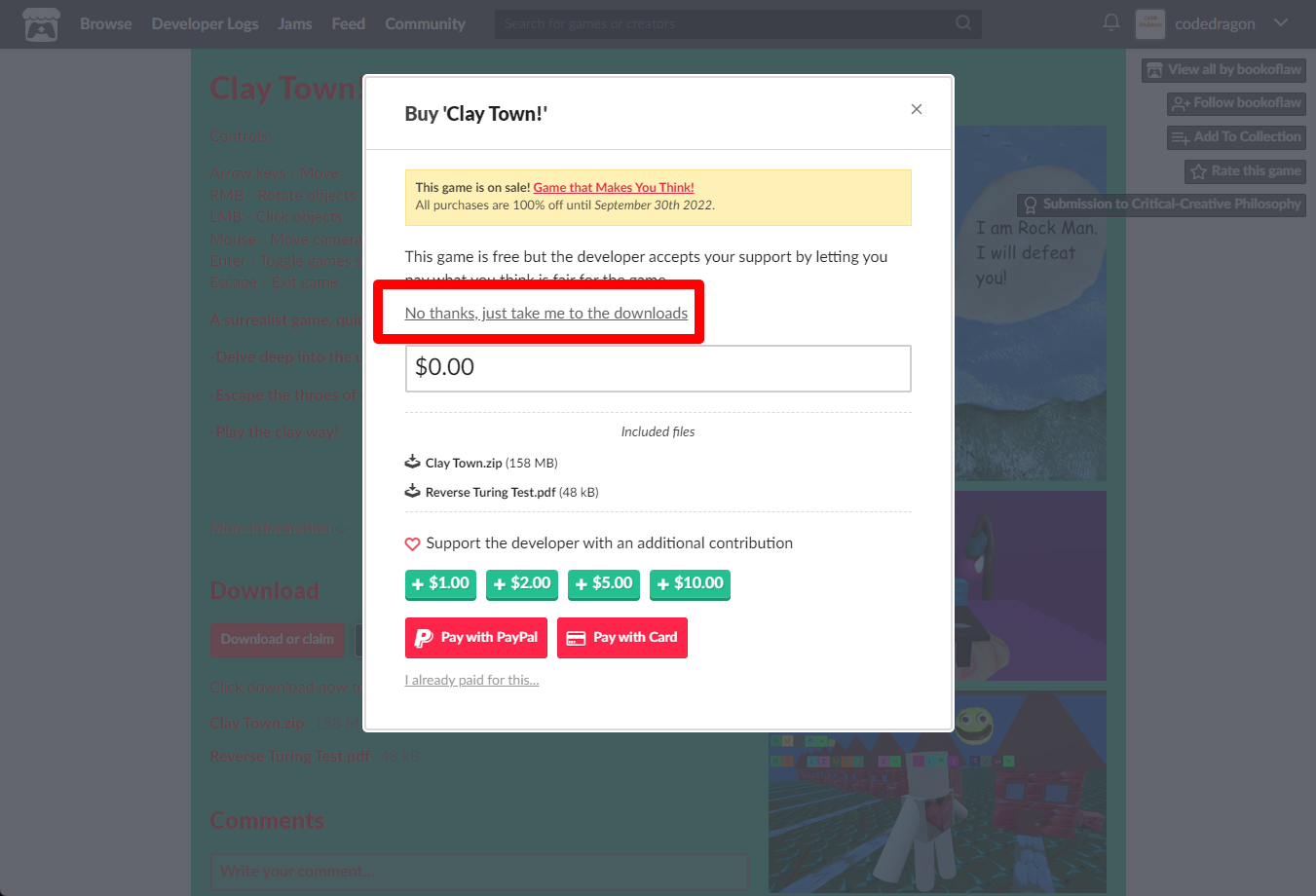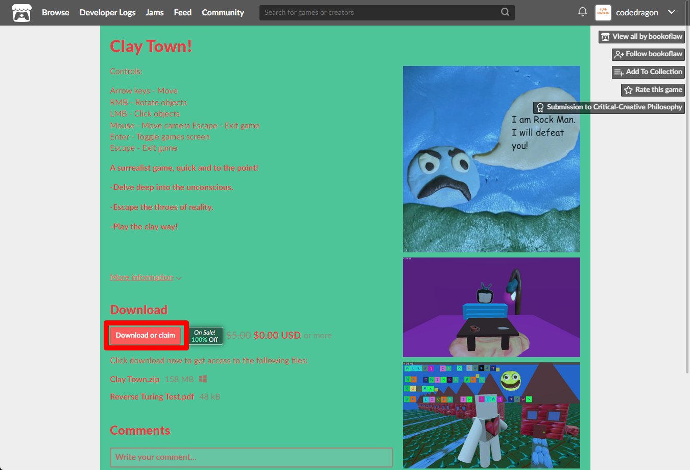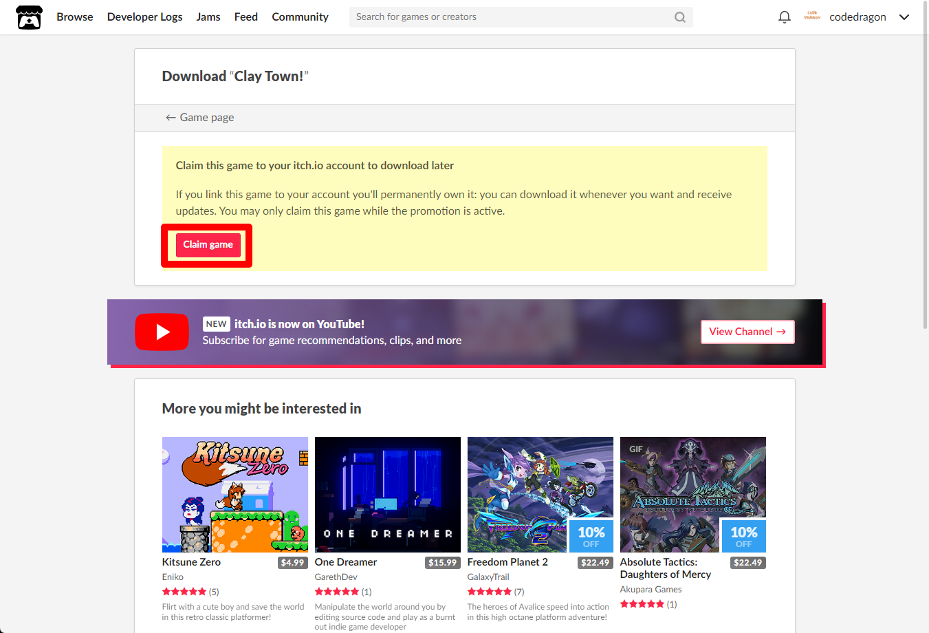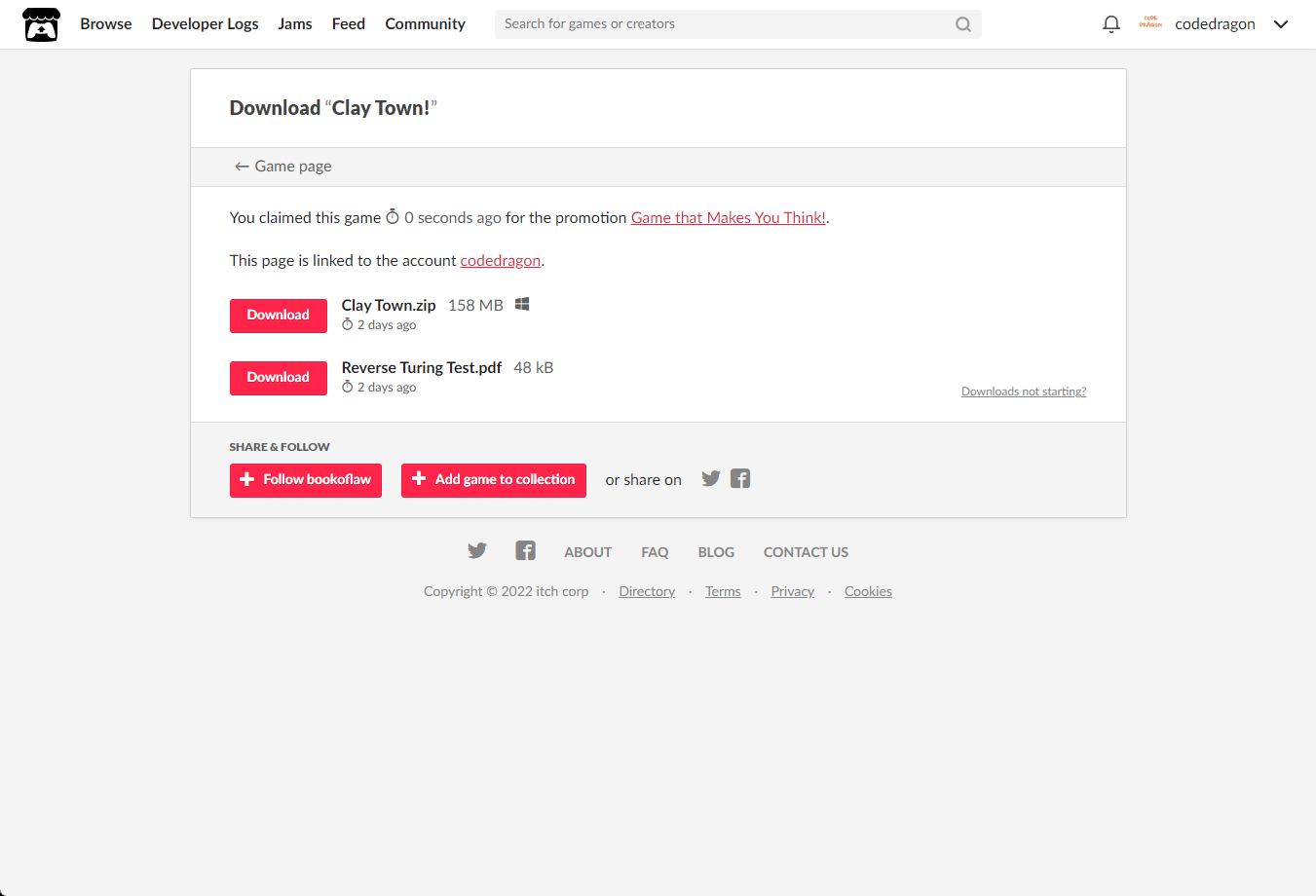 "Clay Town!" 페이지에 있는 [Download or claim]을 클릭합니다.
