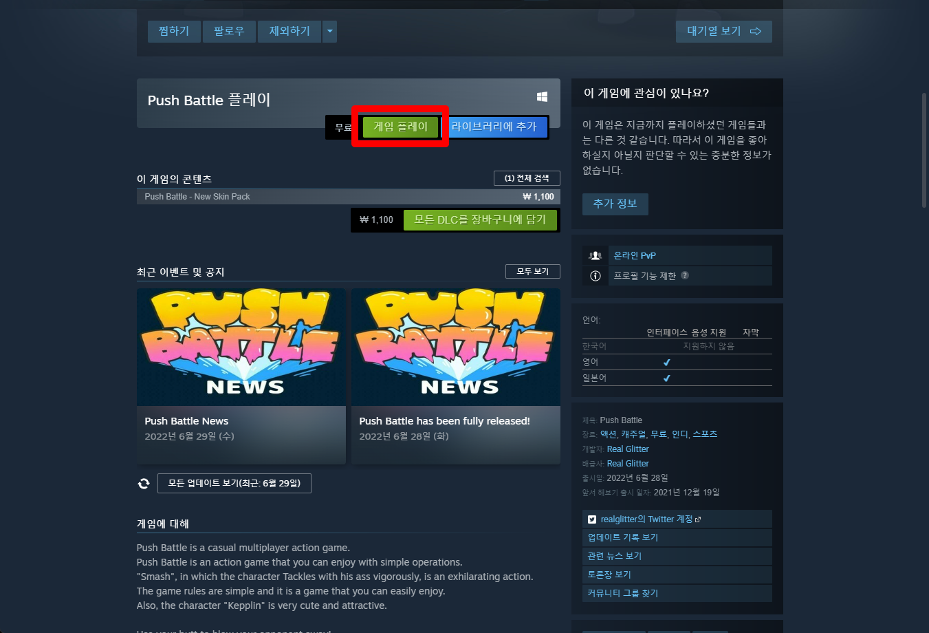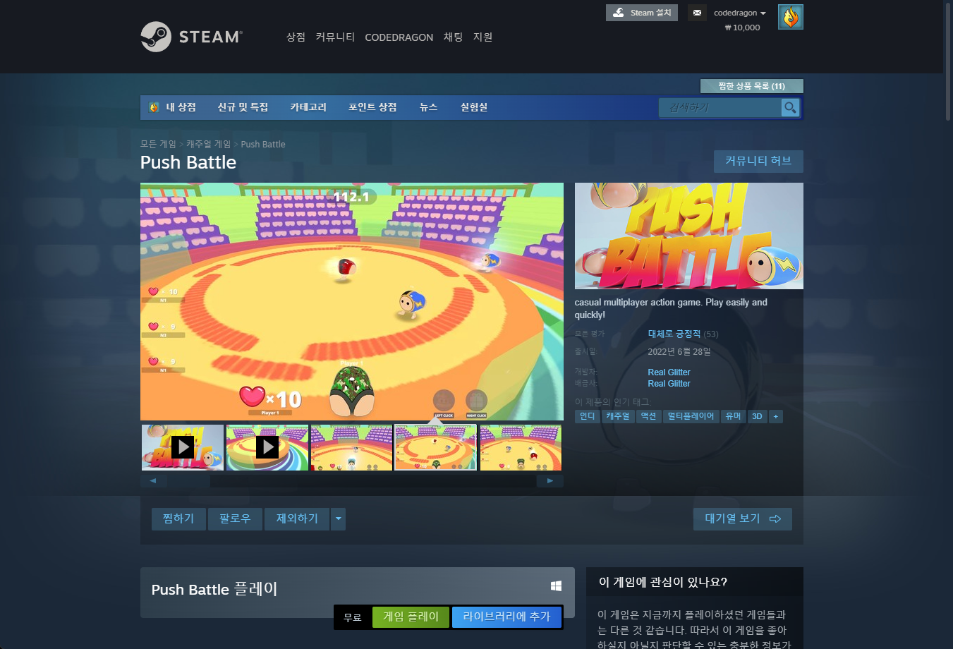 "Push Battle" 스팀 페이지 입니다.