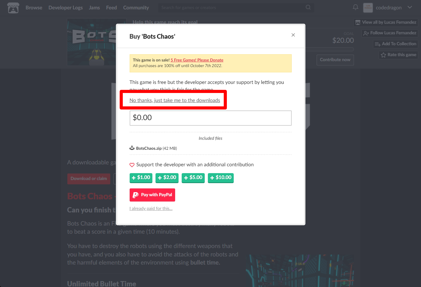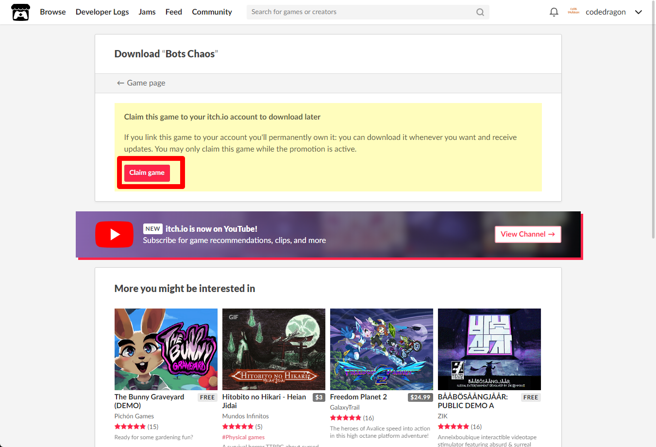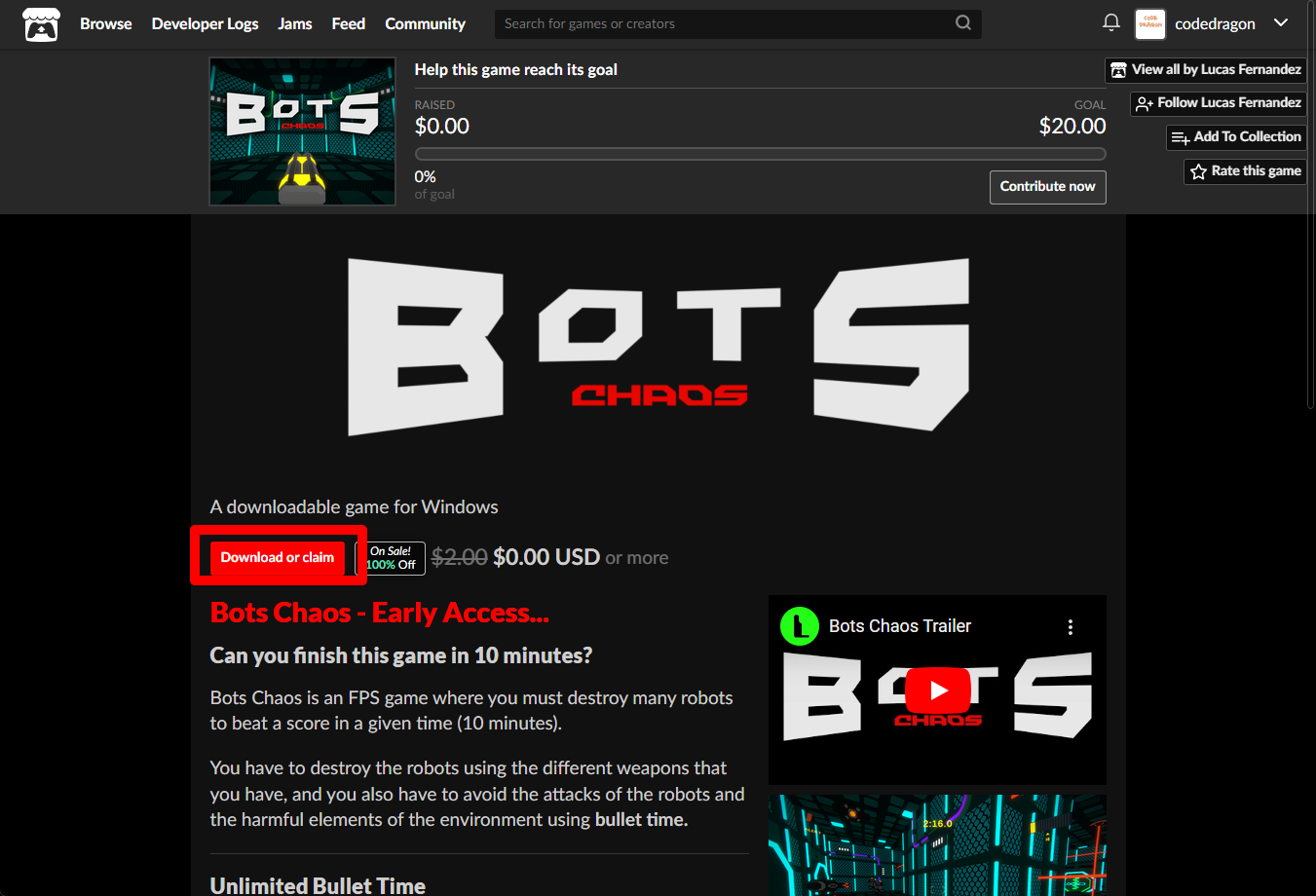 "Bots Chaos" 페이지에 있는 [Download or claim]을 클릭합니다.