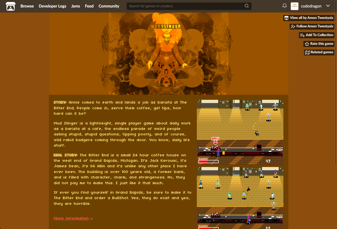 "Mud Slinger" 공식 페이지에 접속합니다.