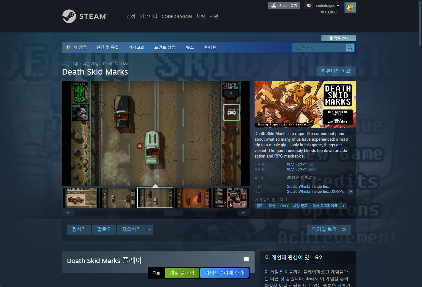 "Death Skid Marks" 페이지를 내려 [게임 플레이]를 클릭하면 됩니다.