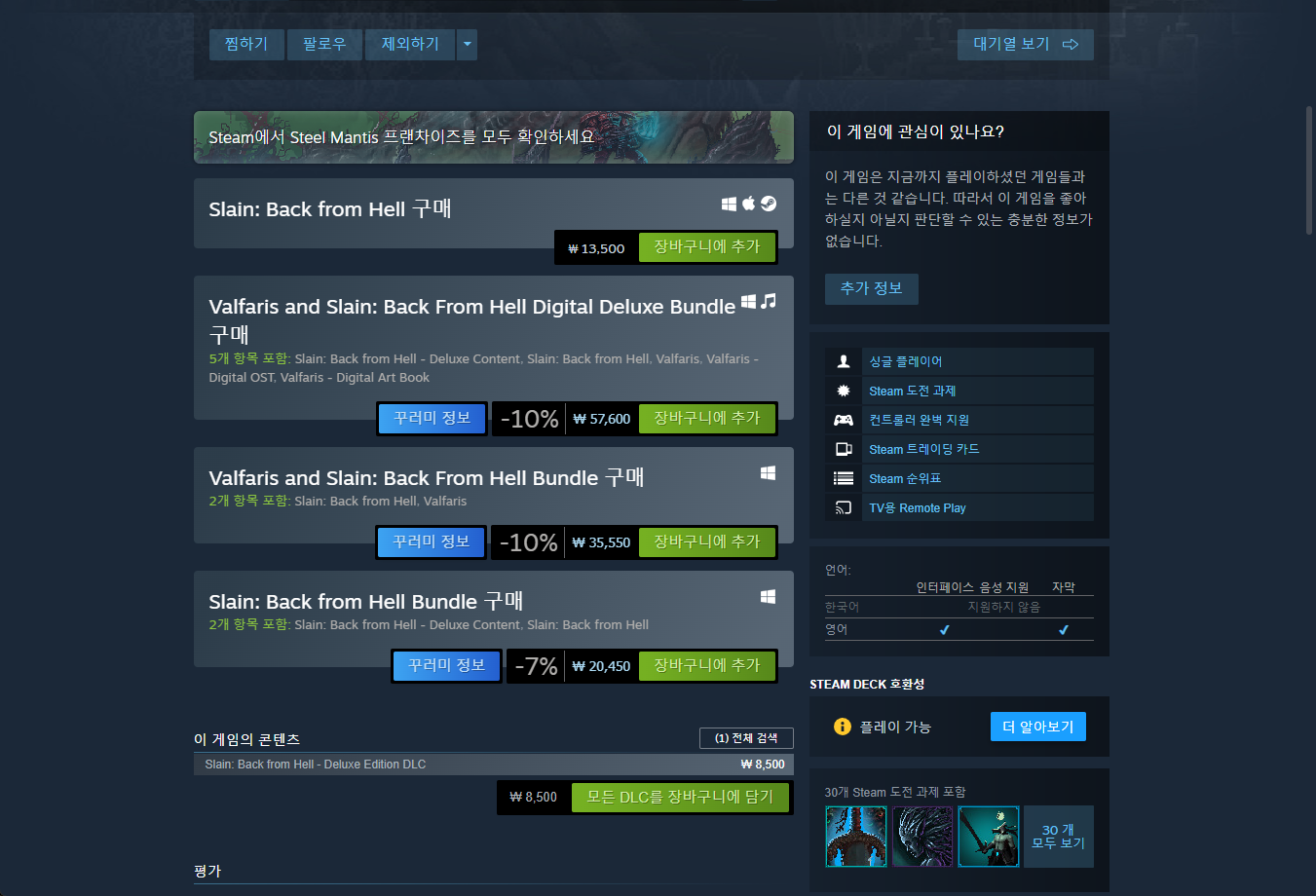- "Slain: Back From Hell" 게임 페이지 다시 접속하기