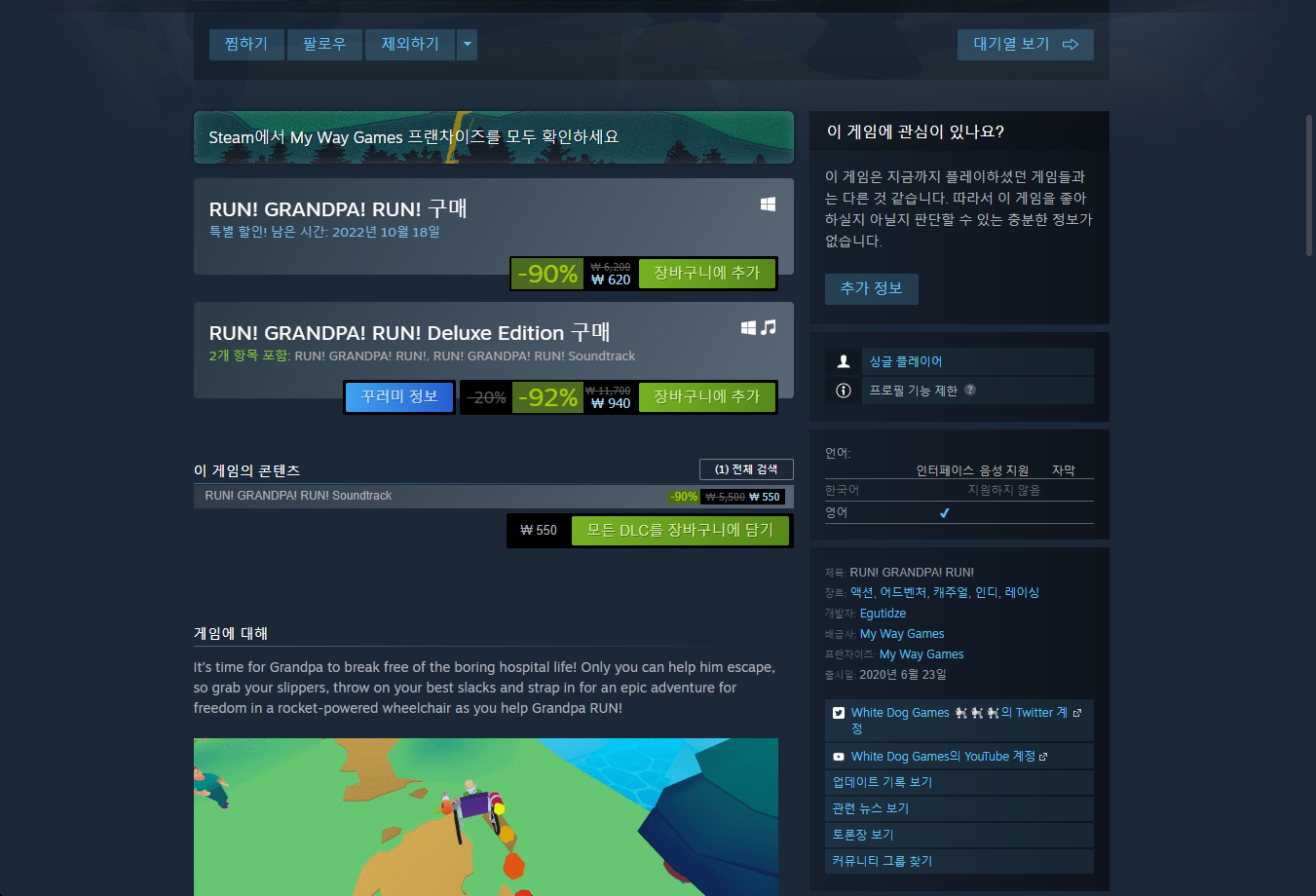 - "RUN! GRANDPA! RUN!" - Steam 스팀 페이지