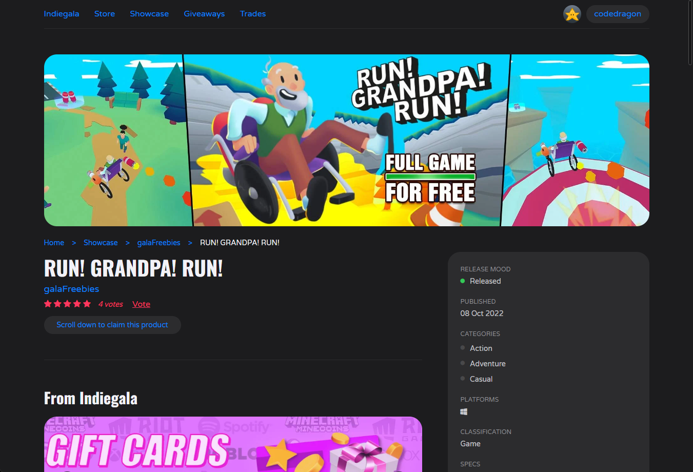 ₩6,200 -> ₩ 0(Free) RUN! GRANDPA! RUN! 런! 그낼드파! 런! 무료 - 인디갈라 indiegala 무료 소장 기회 기간한정 indiegala FREE GAME, Limited time