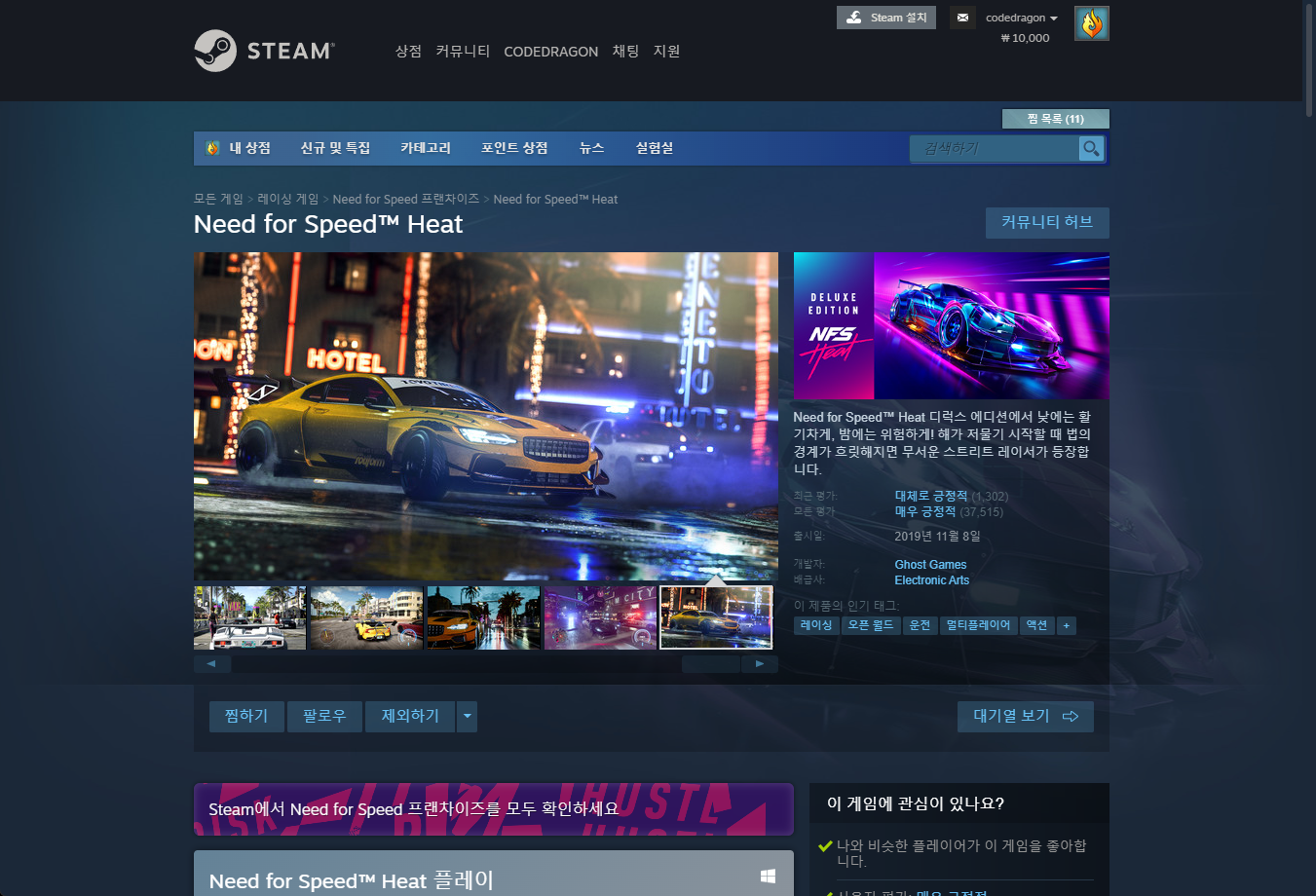 - "Need for Speed™ Heat" 게임 페이지