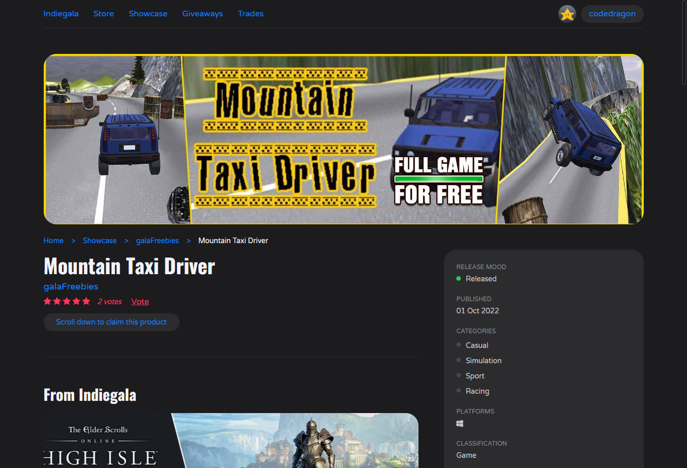₩10,500 -> ₩ 0(Free) Mountain Taxi Driver 마운틴 택시 드라이버 무료 - 인디갈라 indiegala 무료 소장 기회 기간한정 indiegala FREE GAME, Limited time