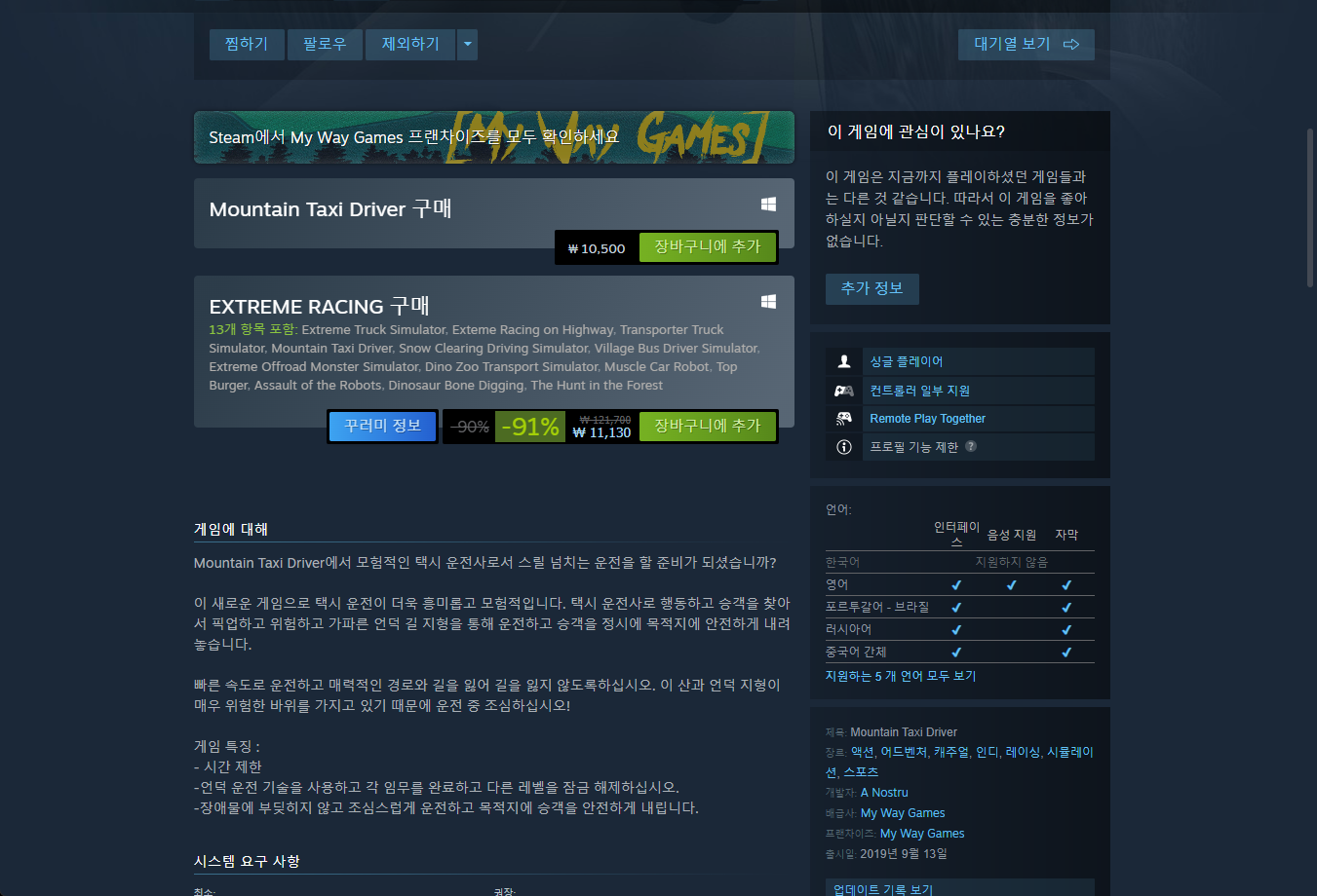 "Mountain Taxi Driver" 게임 보유 확인