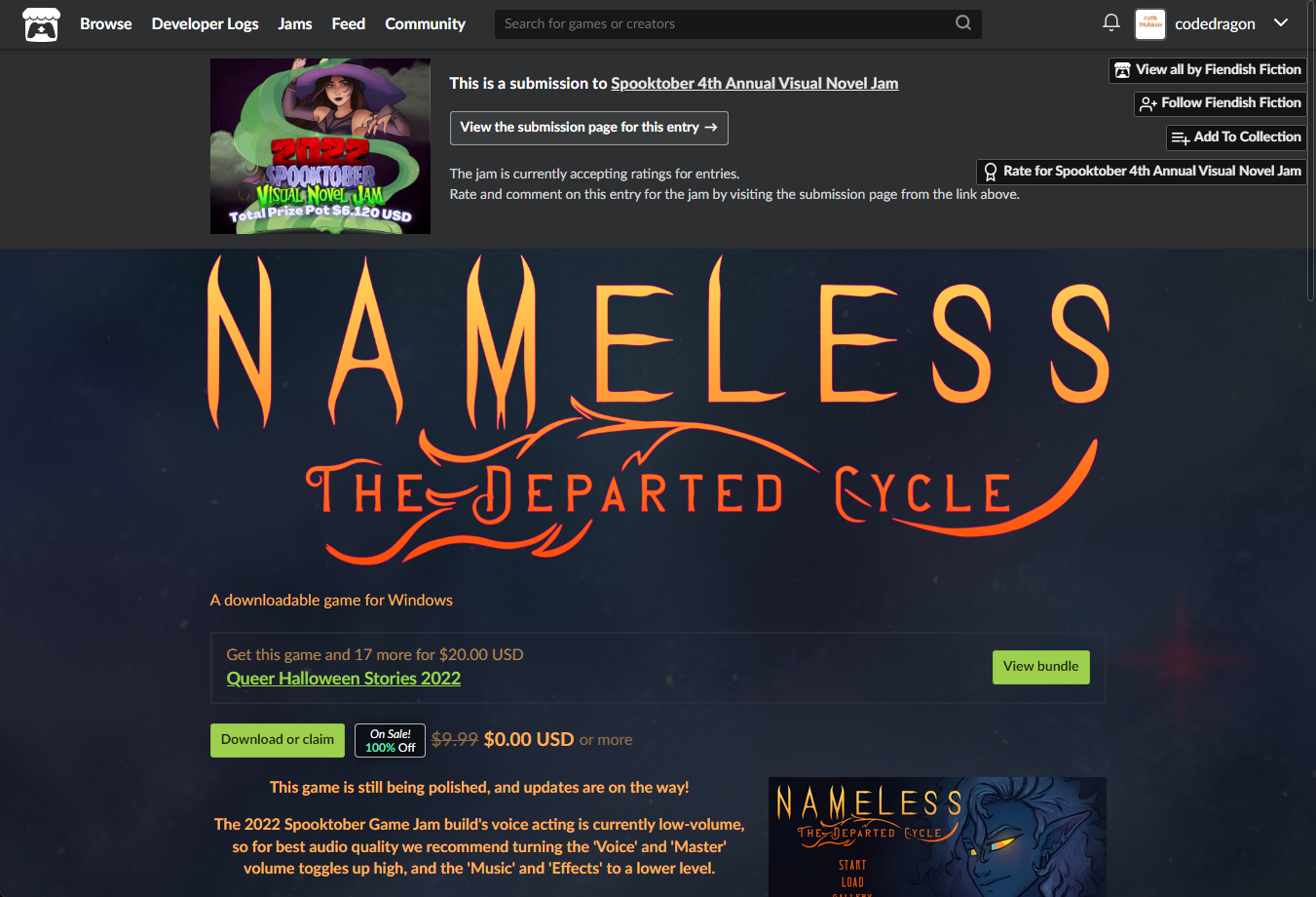"Nameless - The Departed Cycle" 게임 페이지