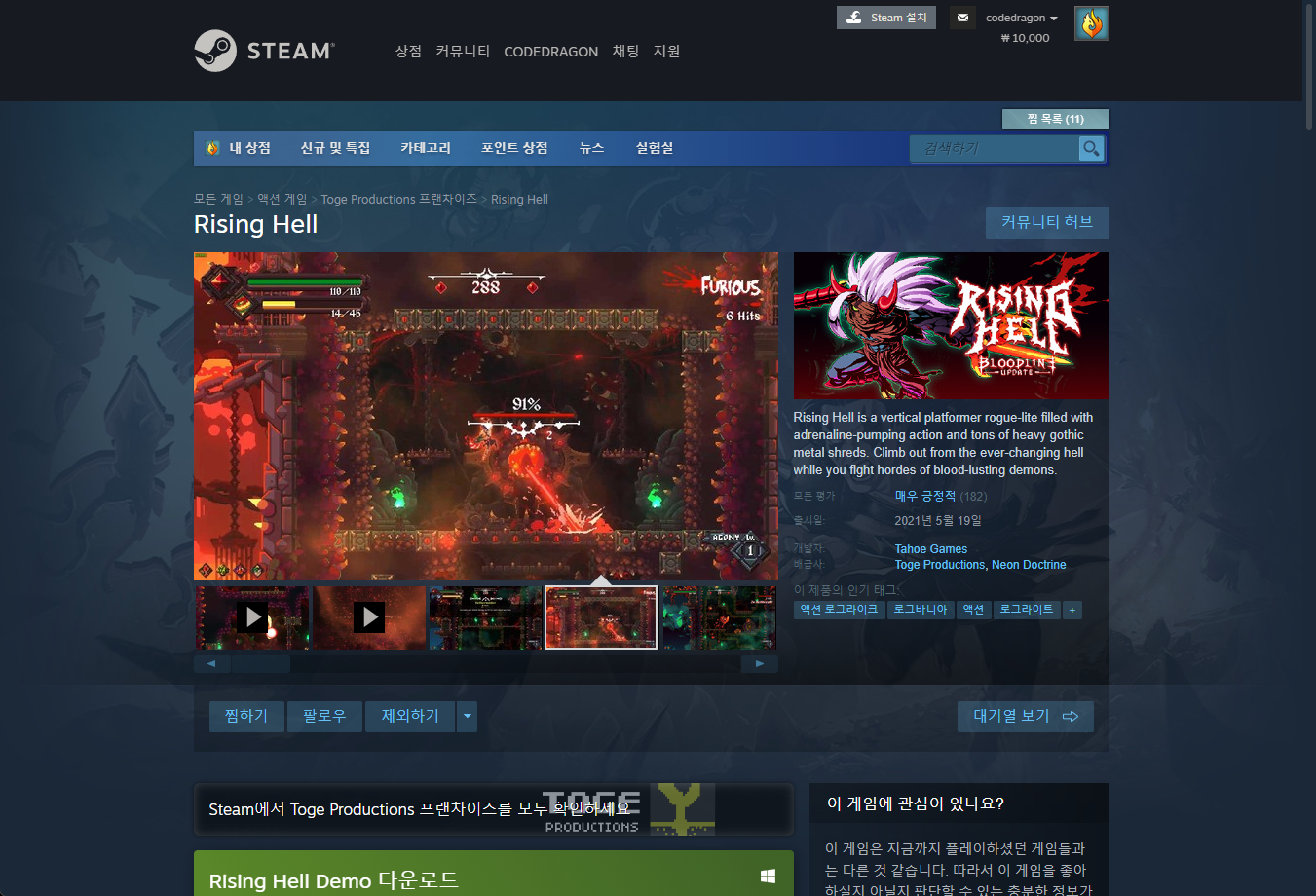 - "Rising Hell" - Steam 스팀 게임 페이지