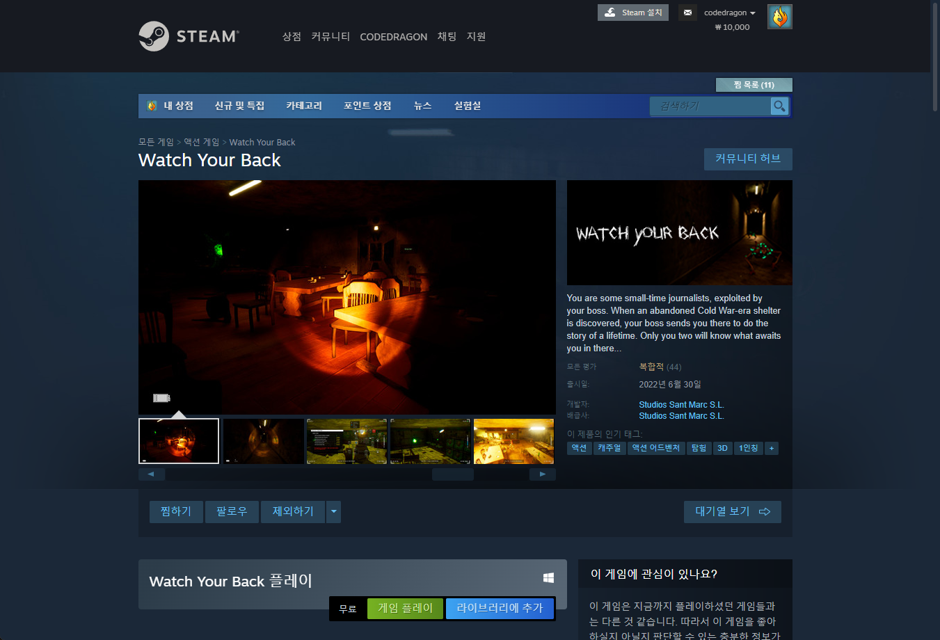"Watch Your Back" 스팀 페이지 입니다.