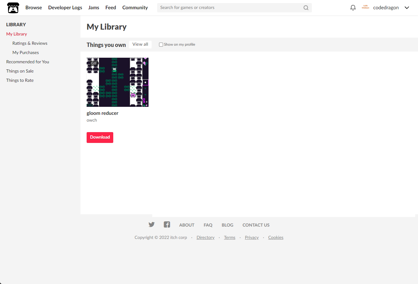 "My Lirary"에서 방금 받은 "gloom reducer" 게임 항목을 확인할 수 있습니다.