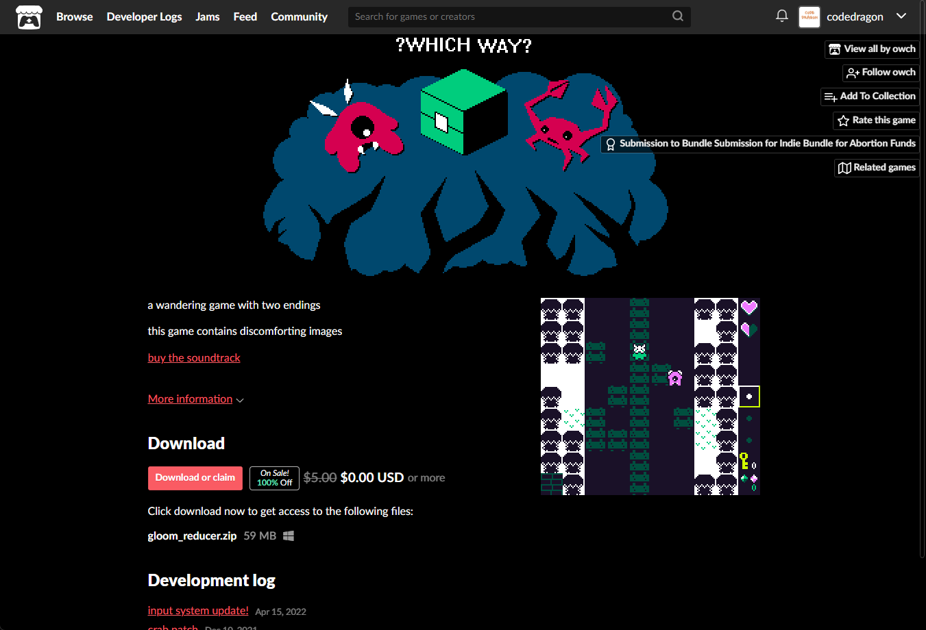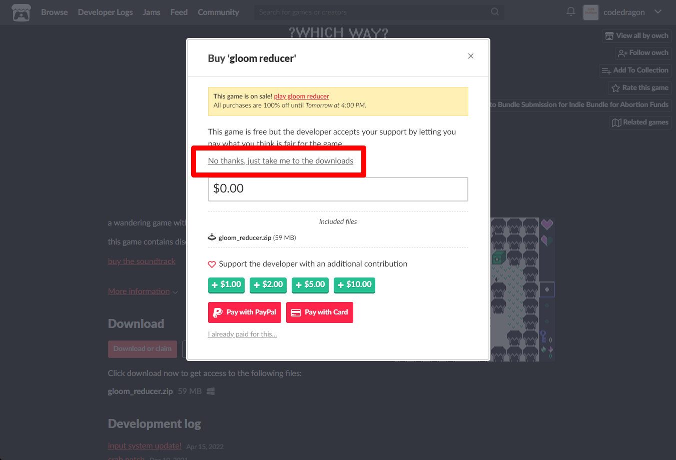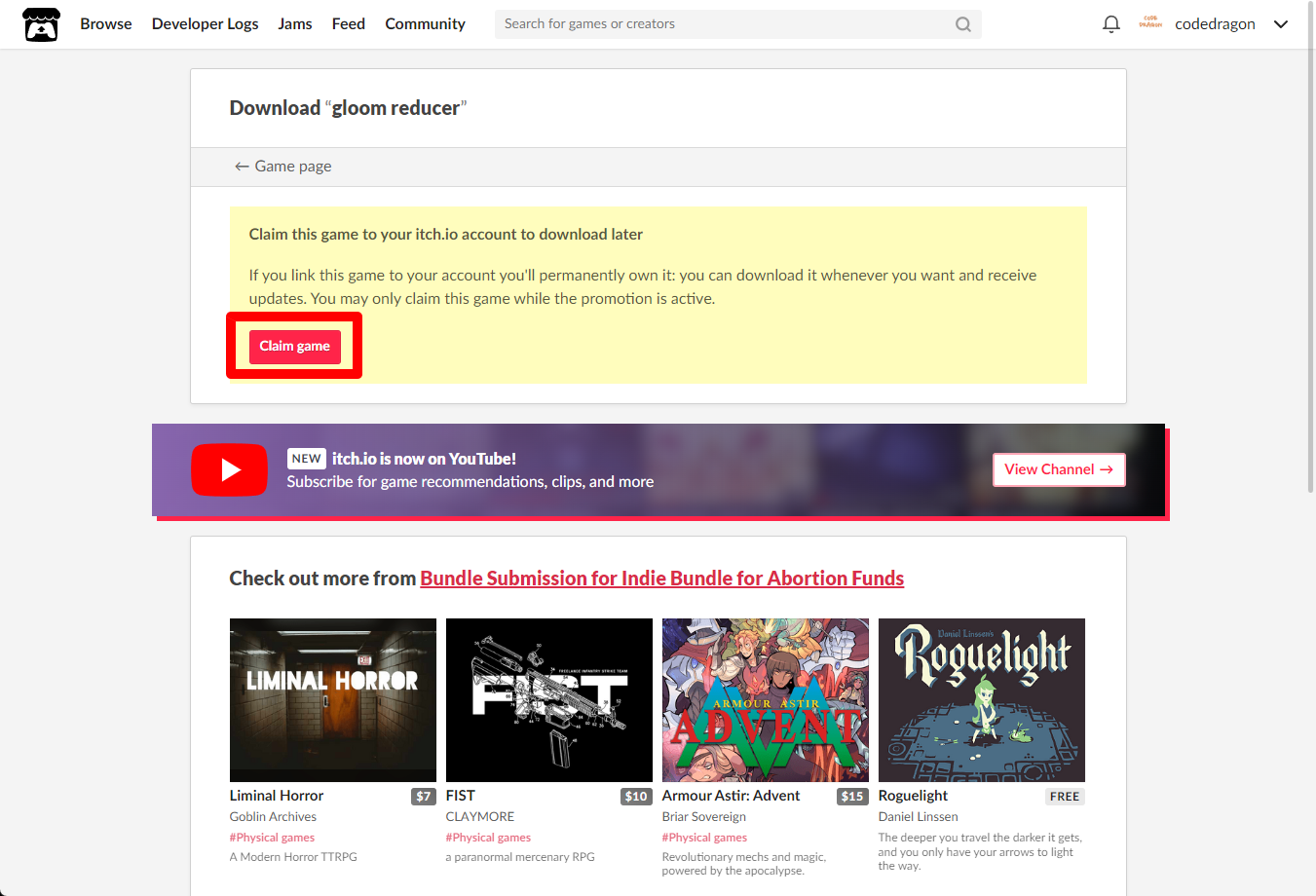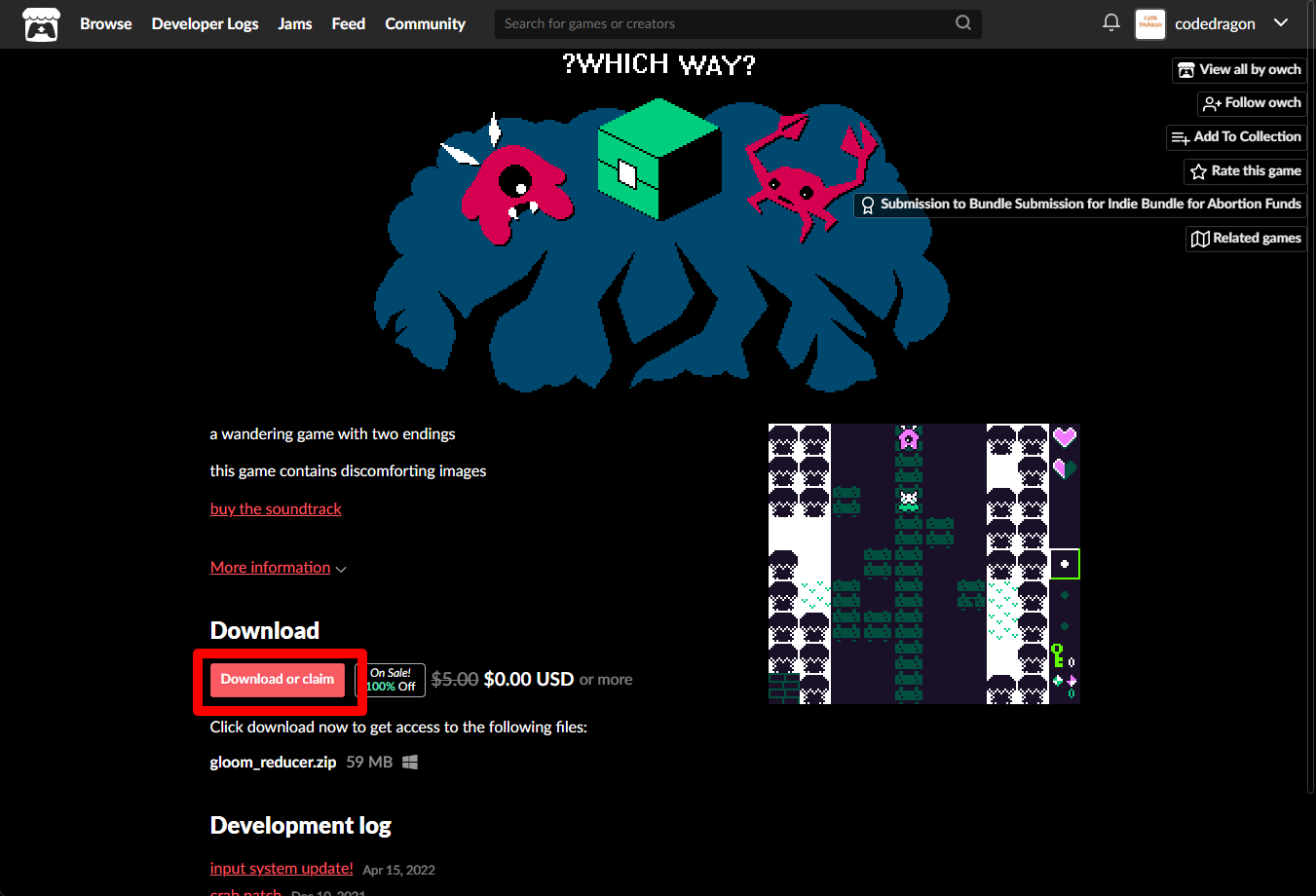 "gloom reducer" 페이지에 있는 [Download or claim]을 클릭합니다.