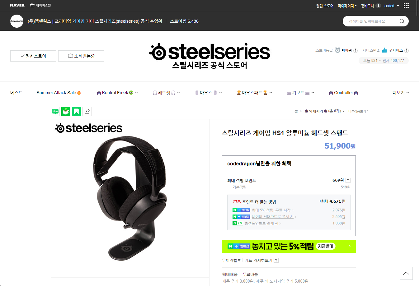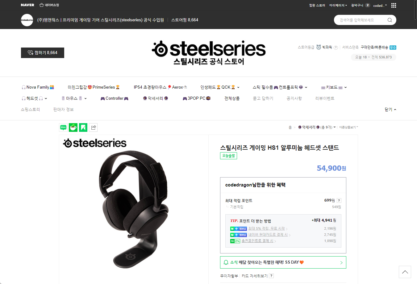 - 스틸시리즈 게이밍 HS1 알루미늄 헤드셋 스탠드 - 상세 제품 정보