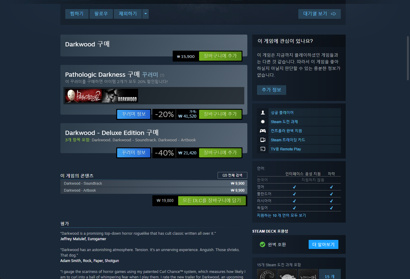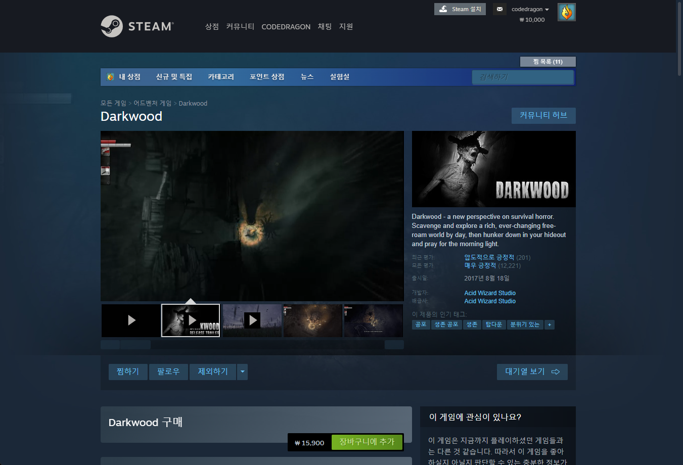 ₩15,900 -> ₩0(FREE) Darkwood 다크우드 무료로 받기 영구소장; 에픽 게임즈 epic games 한시적 무료 Get free copy