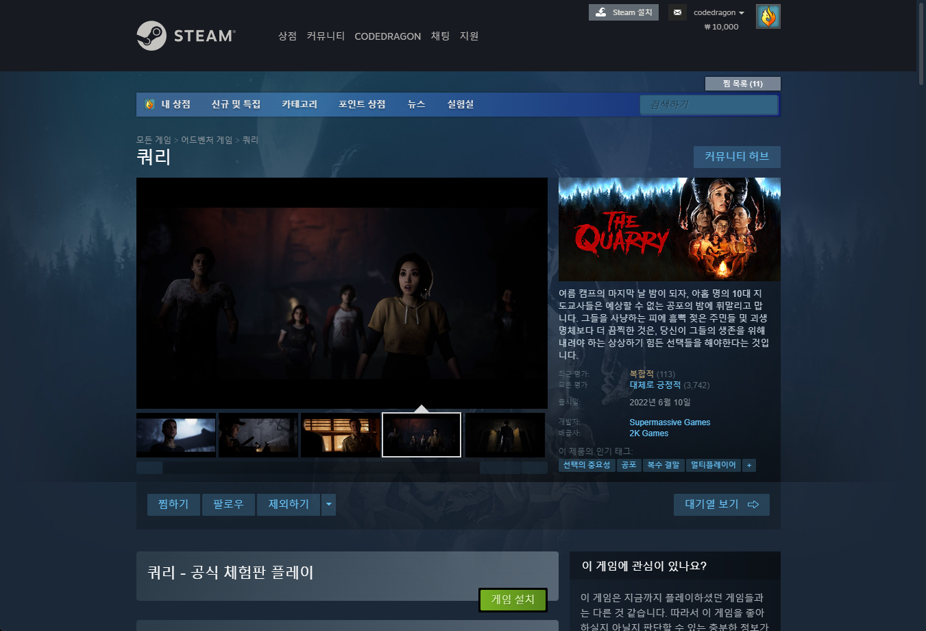 - "쿼리 (The Quarry)"게임 페이지 (Base)