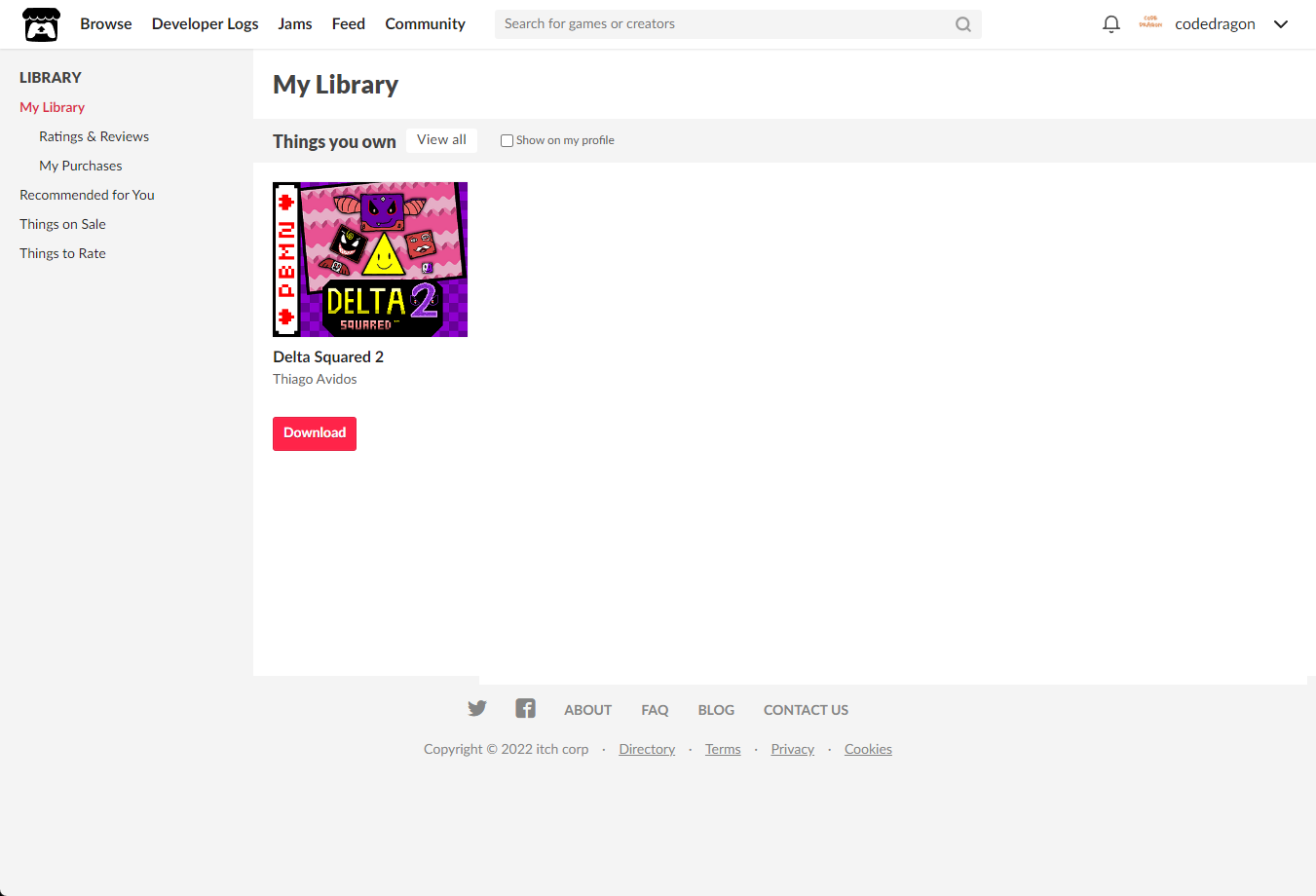 "My Lirary"에서 방금 받은 "Delta Squared 2" 게임 항목을 확인할 수 있습니다.
