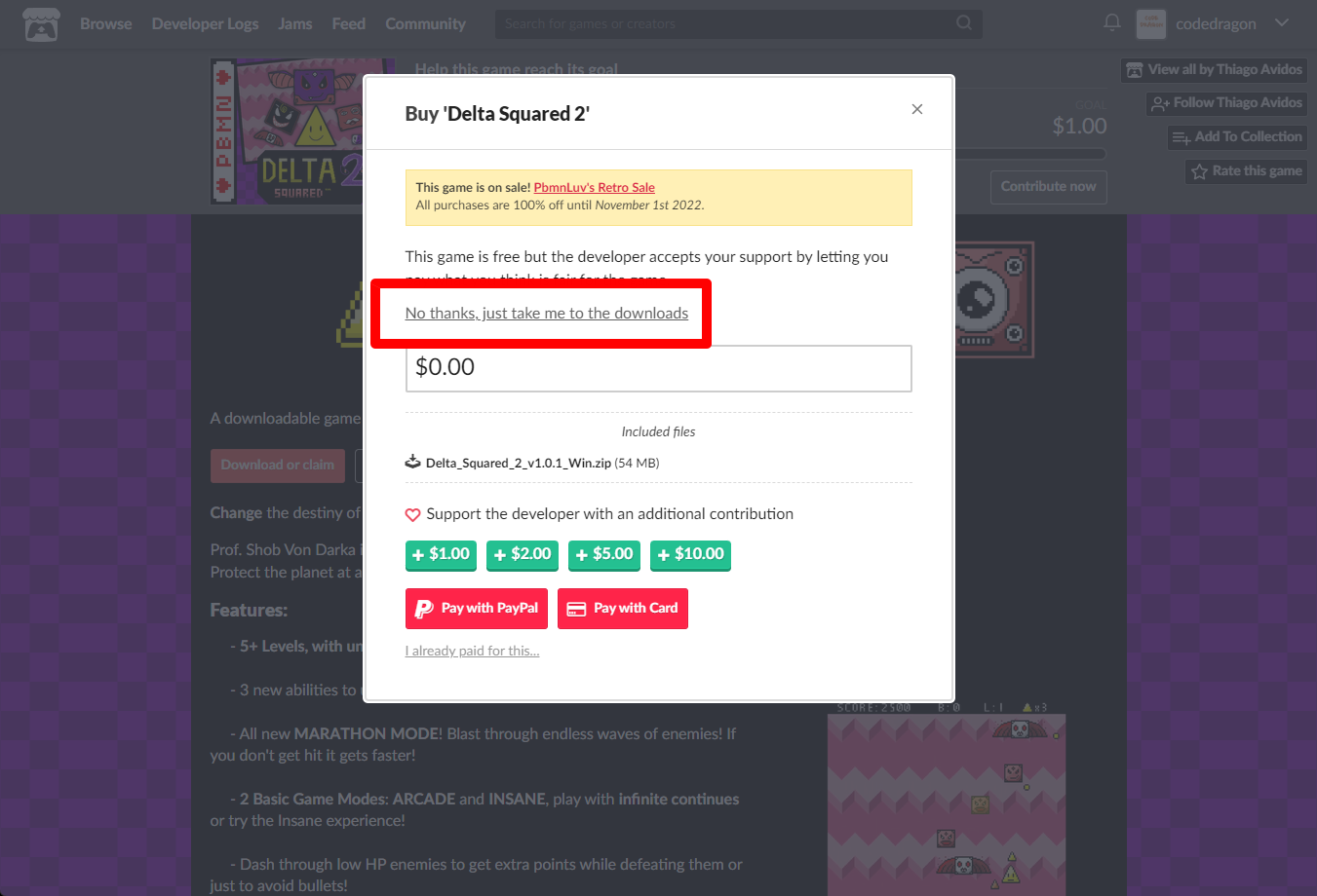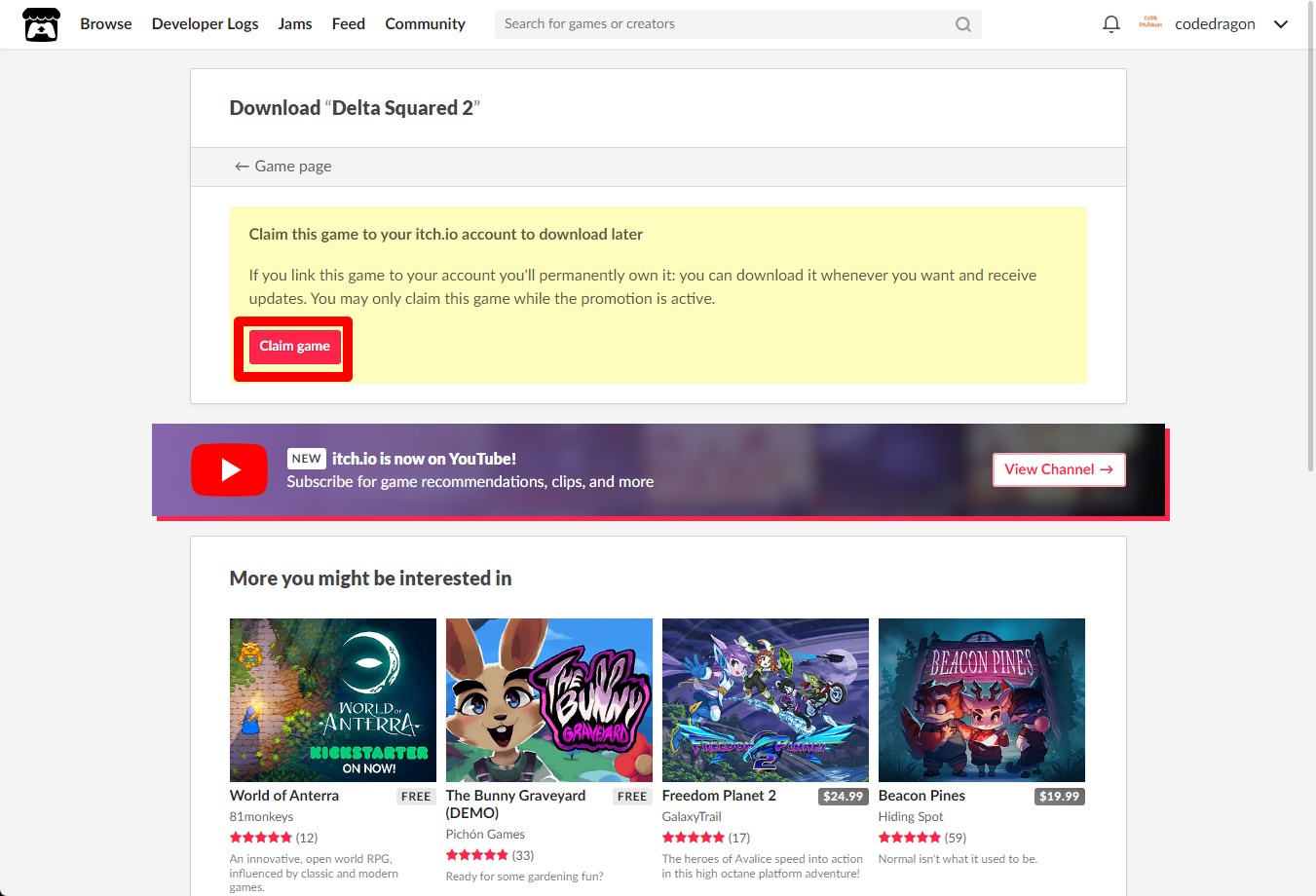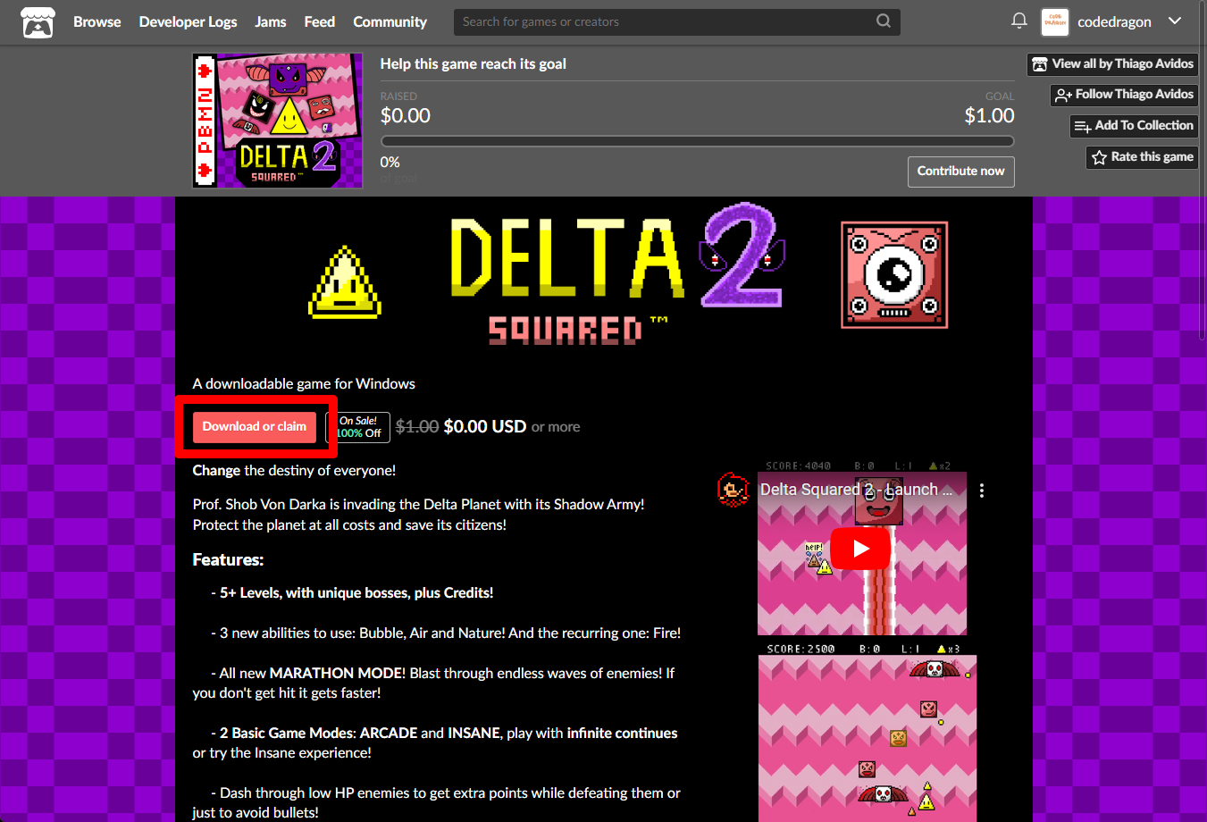 "Delta Squared 2" 페이지에 있는 [Download or claim]을 클릭합니다.