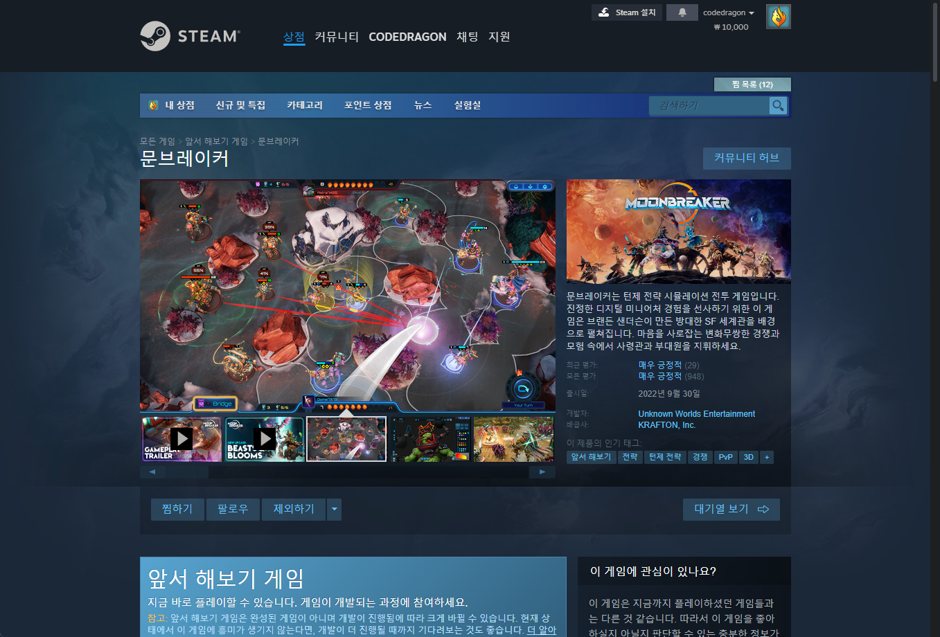 금주 게임은 "전략" 게임인 "Moonbreaker" 입니다.