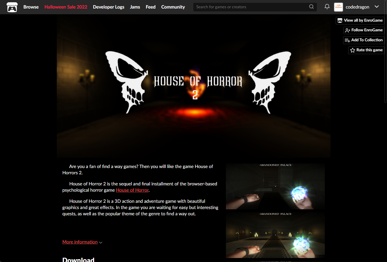 "House of horror 2" 해당 항목에 있는 [Download] 버튼을 클릭하면 게임의 설치파일을 다운받을 수 있습니다.