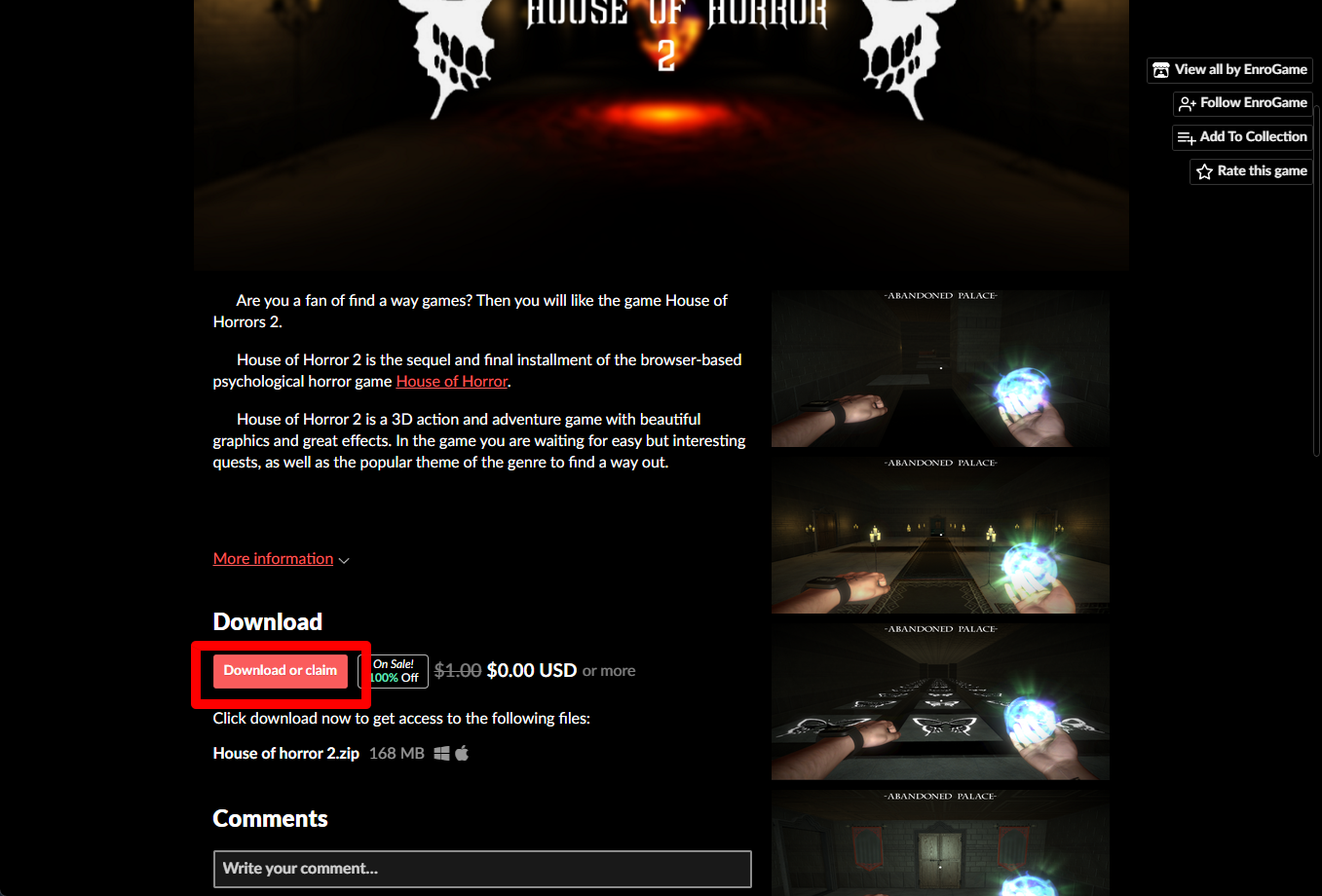 "House of horror 2" 페이지를 조금내려 [Download or claim]을 클릭합니다.