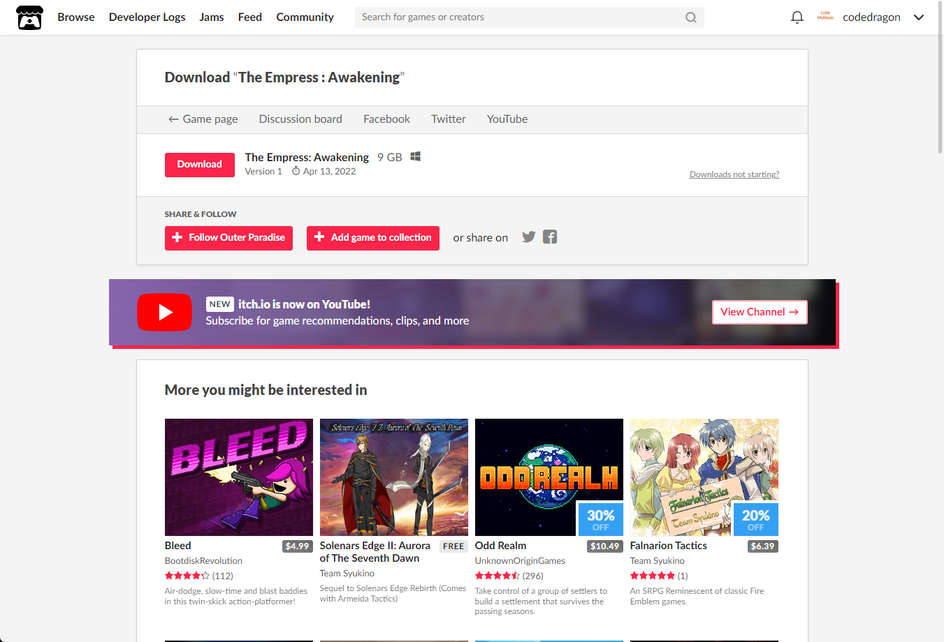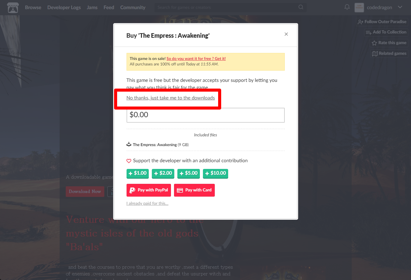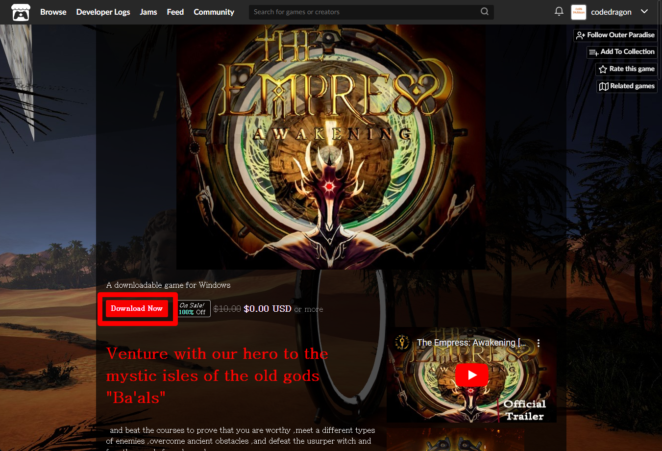 "The Empress : Awakening" 페이지에 있는 [Download or claim]을 클릭합니다.