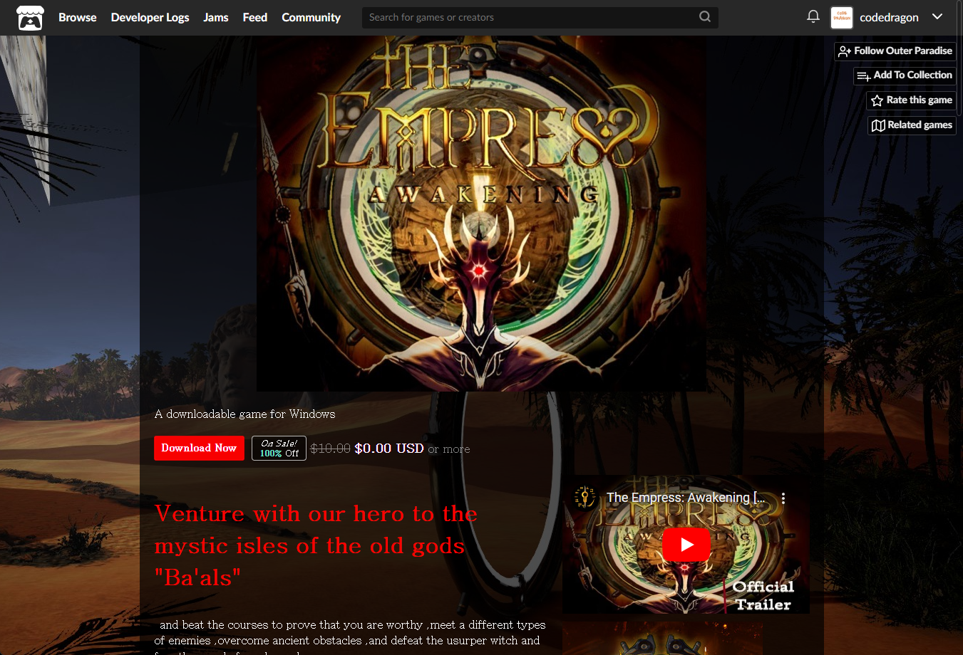 ₩14,380 -> ₩0(Free) The Empress : Awakening 더 엠프리스 : 어웨이커닝 무료로 받기 영구소장 - itch.io 잇치 닷 아이오 한시적 무료 소장하기