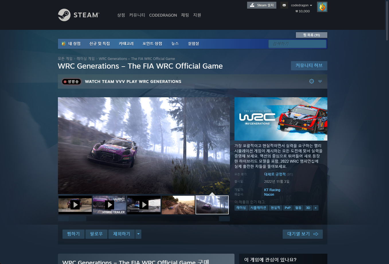 - "WRC Generations – The FIA WRC Official Game"게임 페이지 (Base)