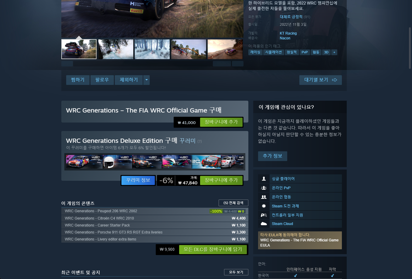 "WRC Generations – The FIA WRC Official Game" 게임 페이지 (base game)