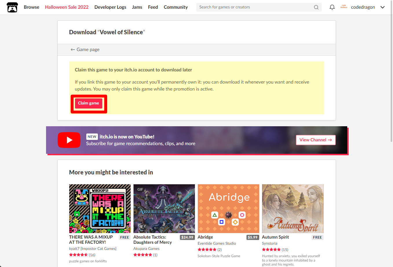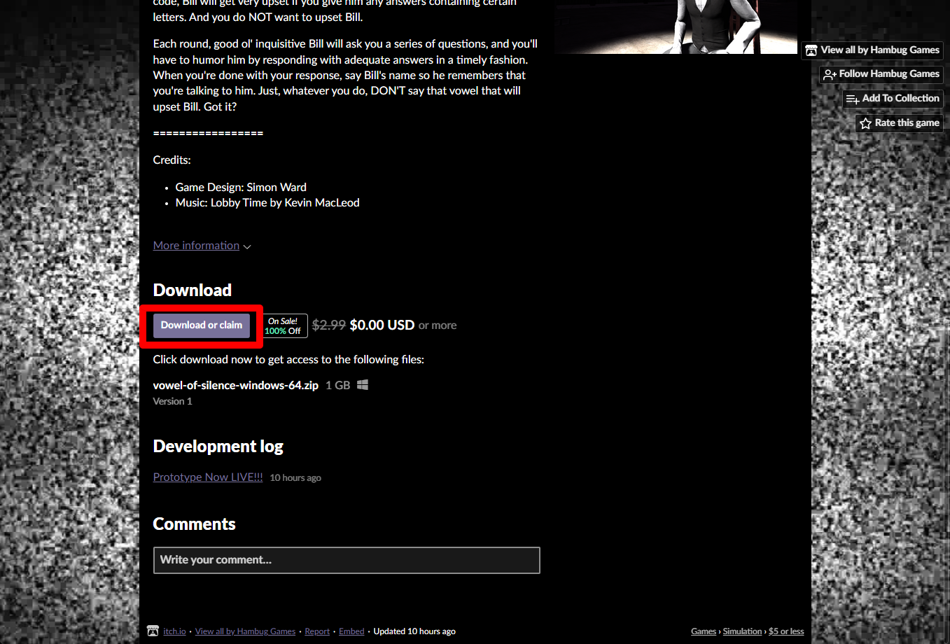 "Vowel of Silence" 페이지에 있는 [Download or claim]을 클릭합니다.