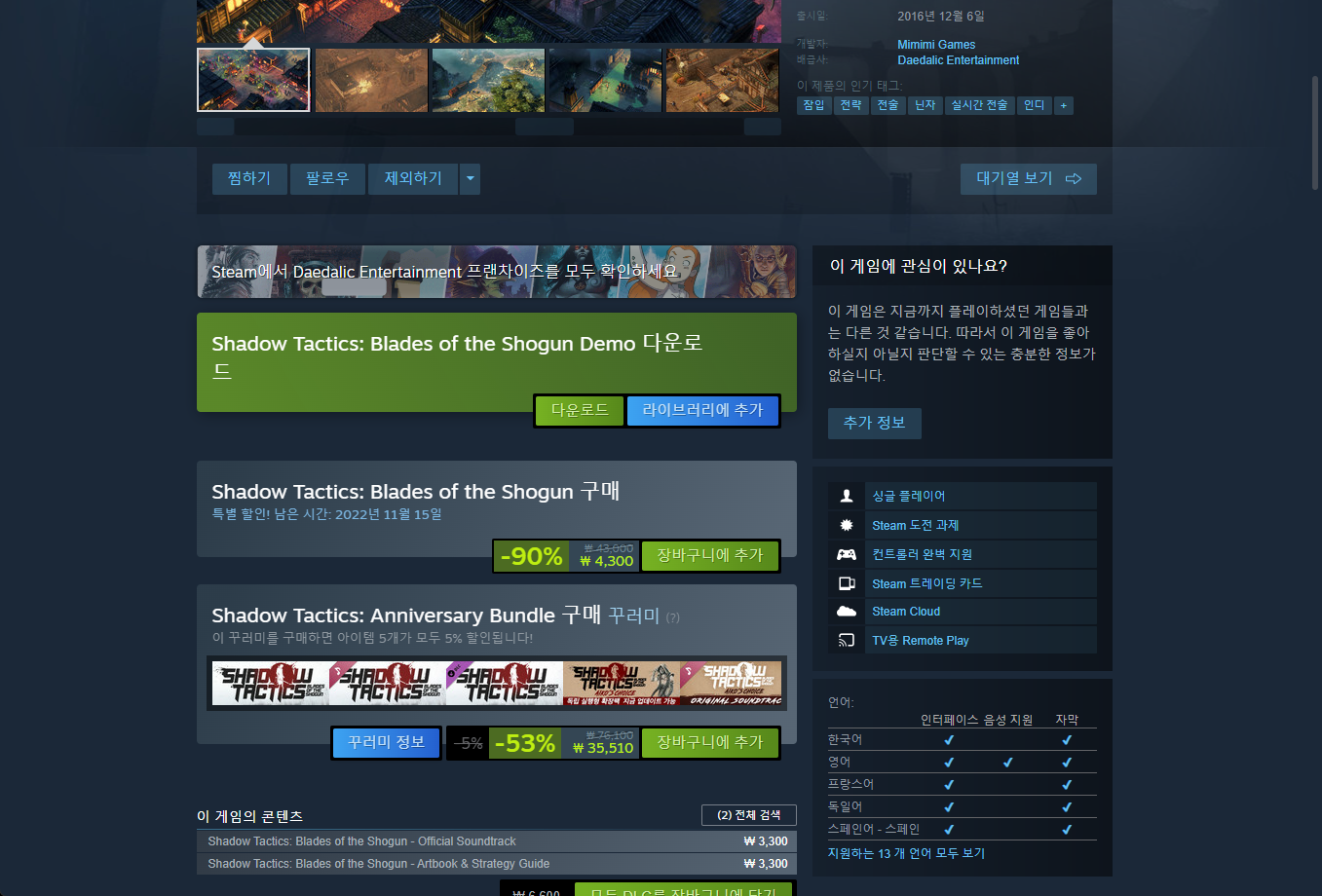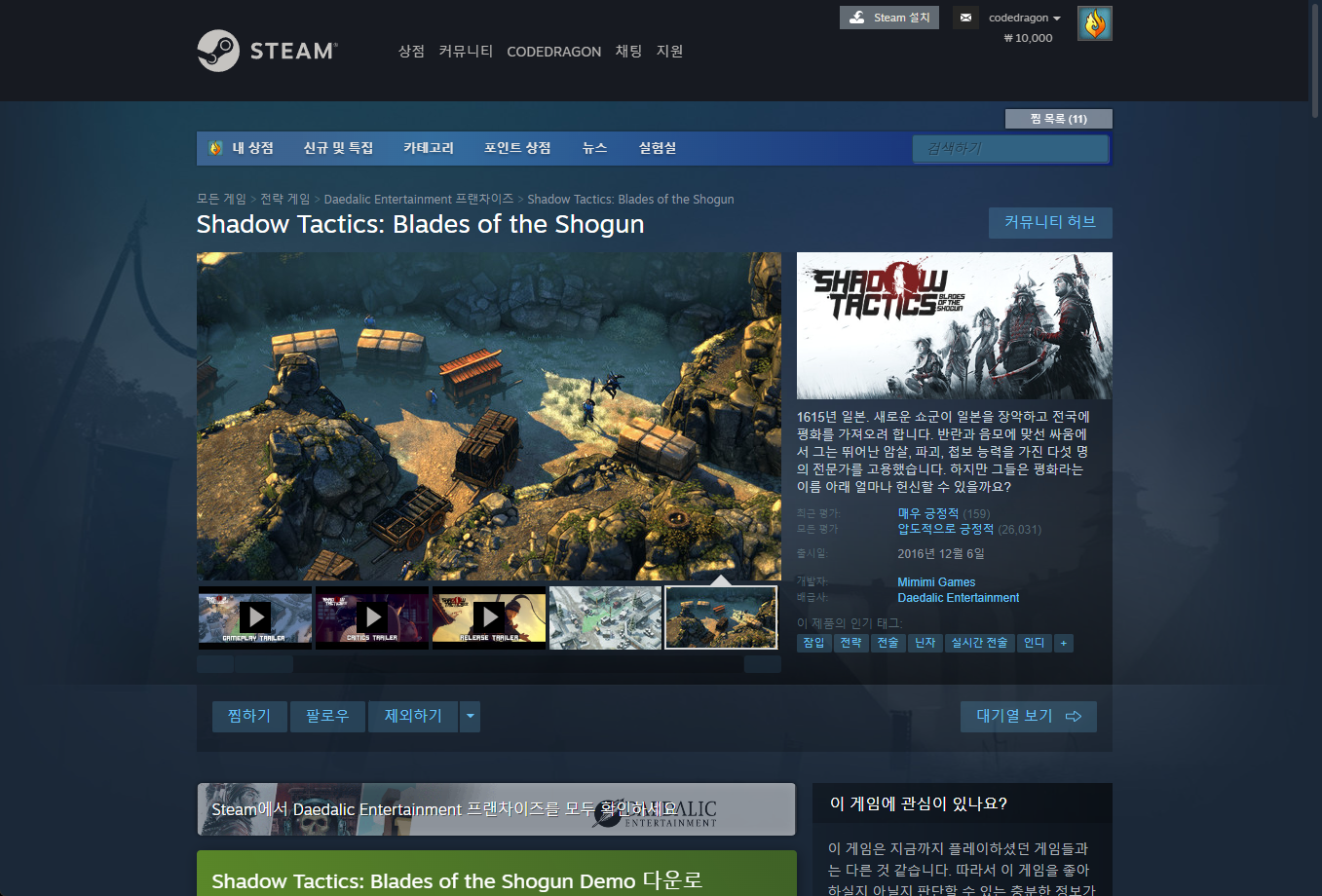 - "Shadow Tactics" - Steam 스팀 게임 페이지