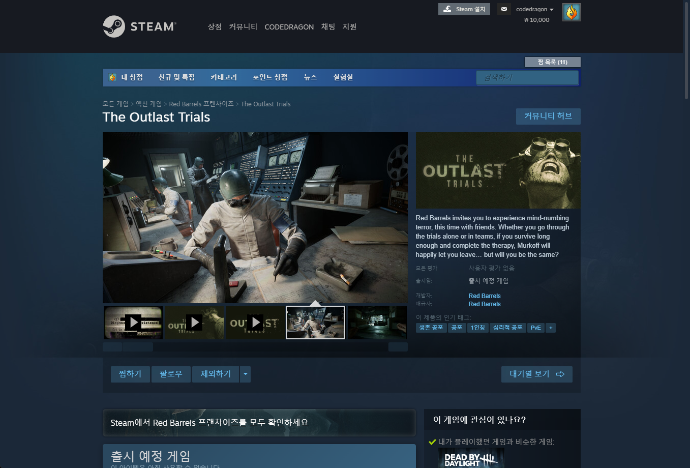 "The Outlast Trials" 게임 페이지입니다.