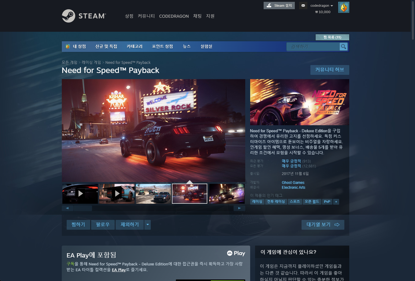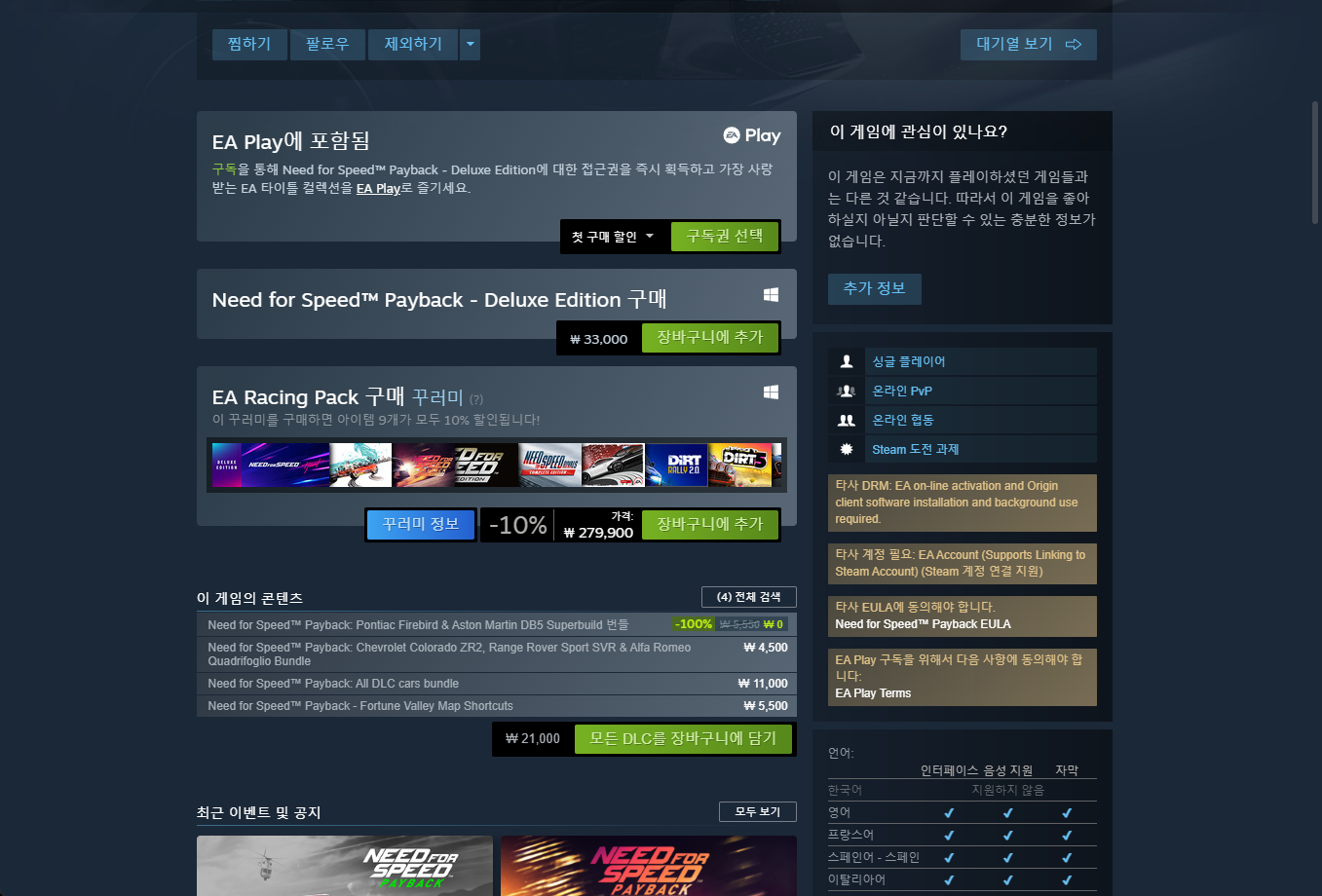 - "Need for Speed™ Payback"게임 페이지 (Base)