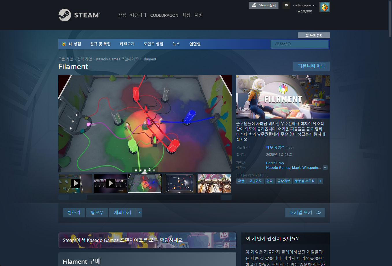 ₩19,000 -> ₩0(FREE) Filament 필라멘트 무료로 받기 영구소장; 에픽 게임즈 epic games 한시적 무료 Get free copy