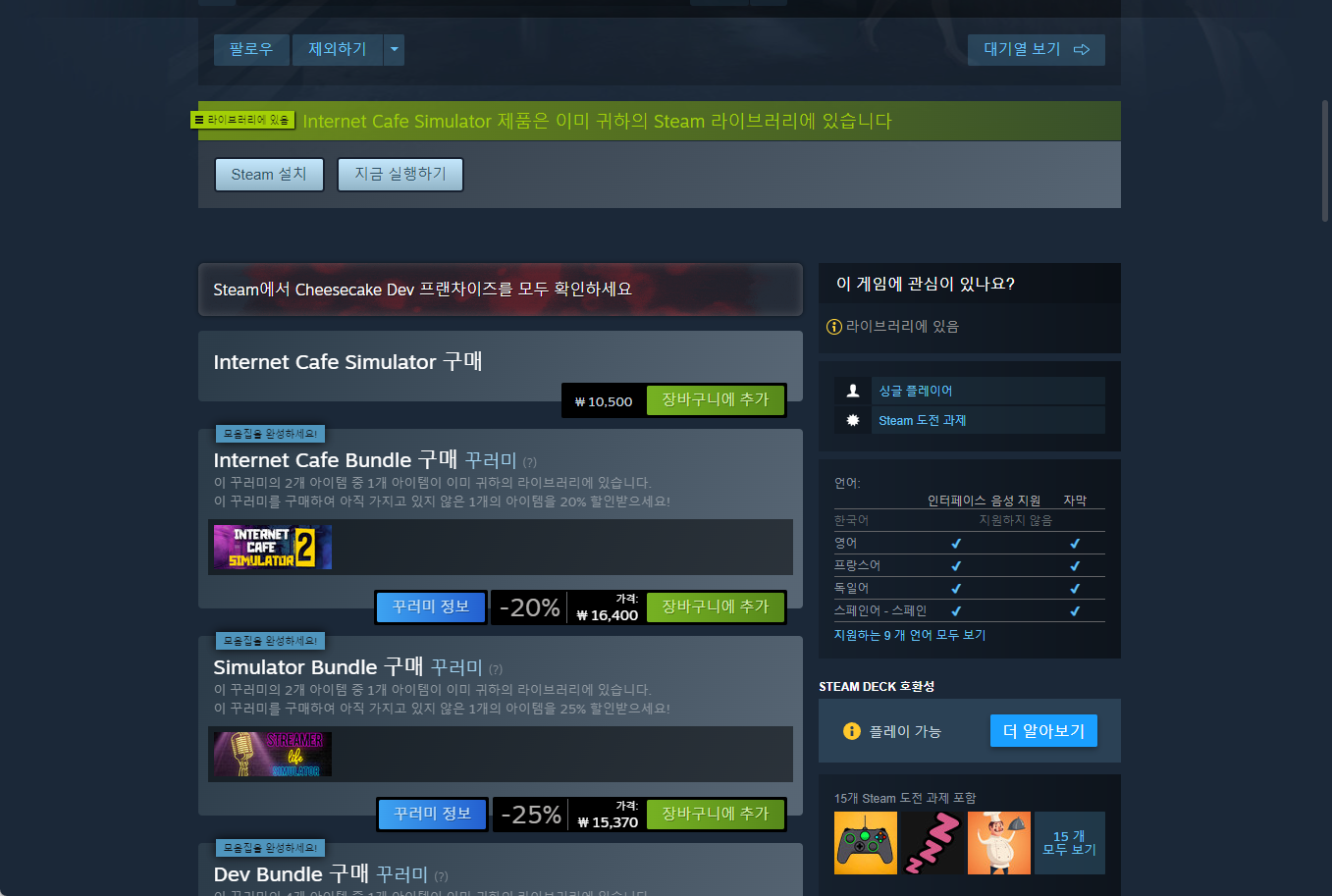 - "Internet Cafe Simulator" - 스팀 게임페이지