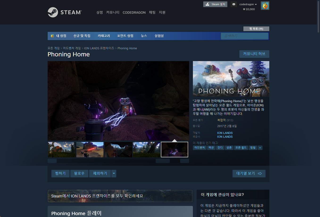 "Phoning Home" 스팀 페이지 입니다.