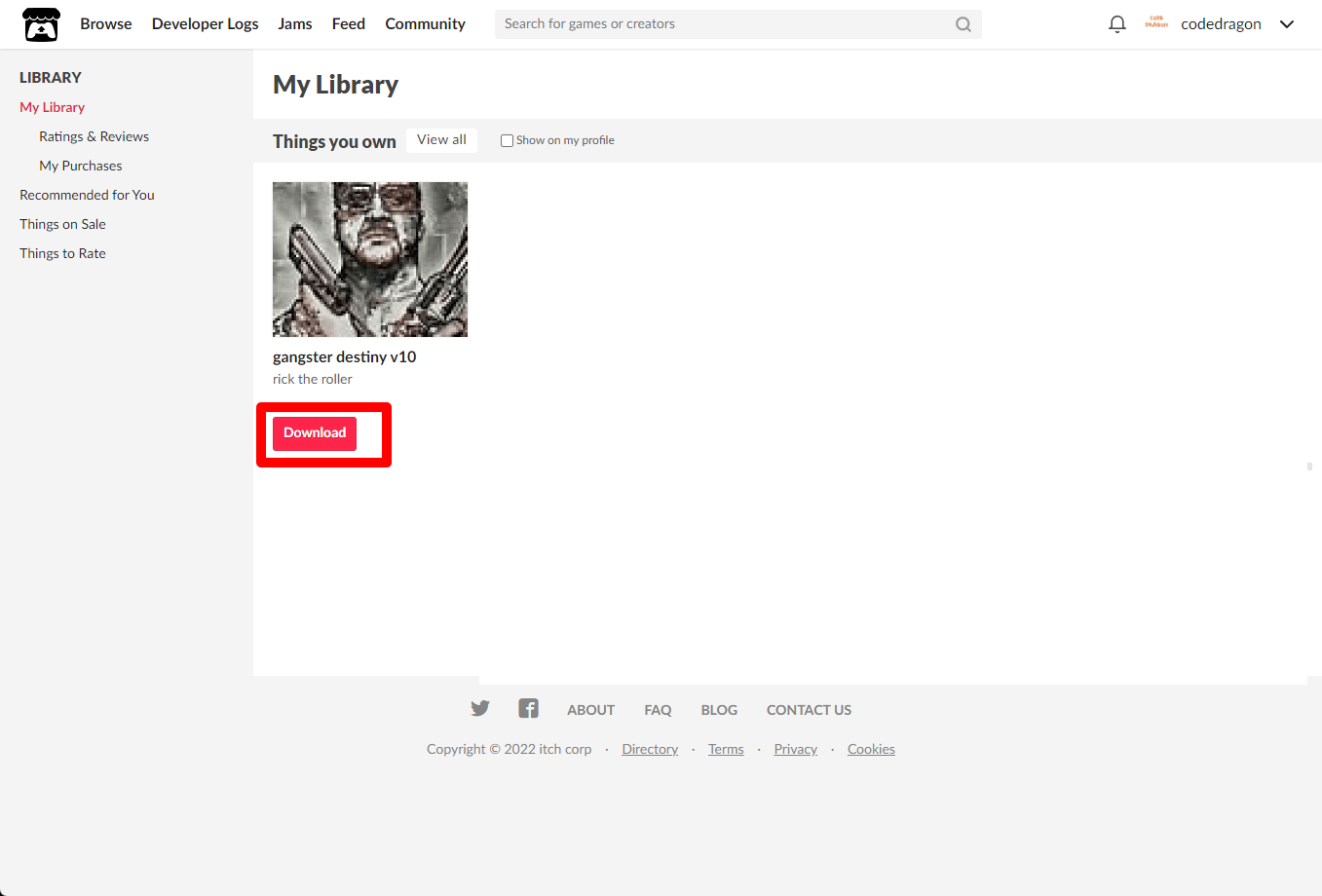 [Claim game]을 클릭하면 "gangster destiny v10" 게임이 나의 게임 라이브러리에 추가되고 설치파일을 다운받을 수 있는 페이지로 이동됩니다.
