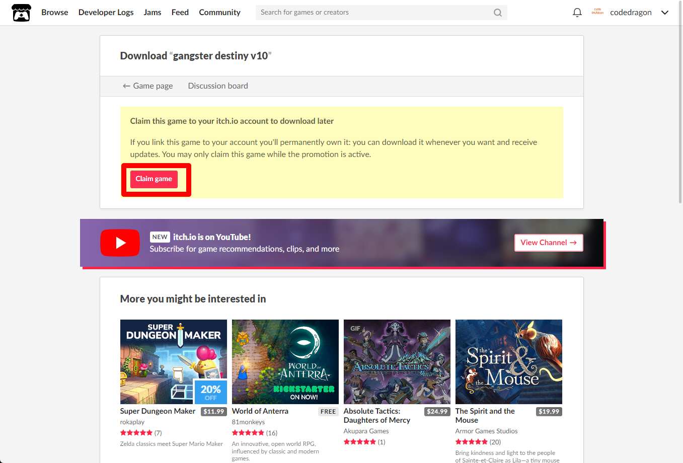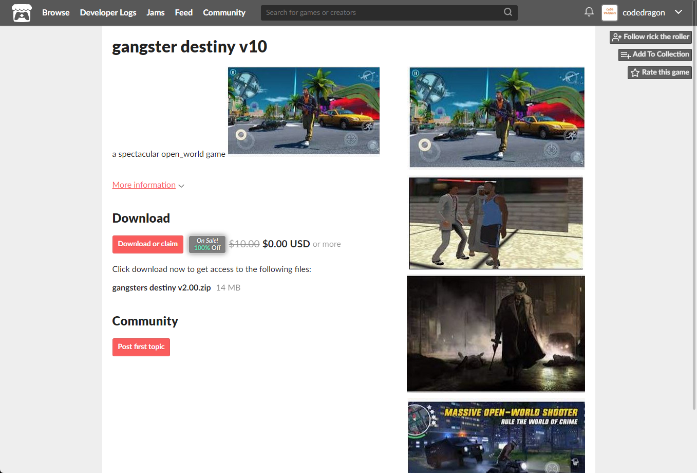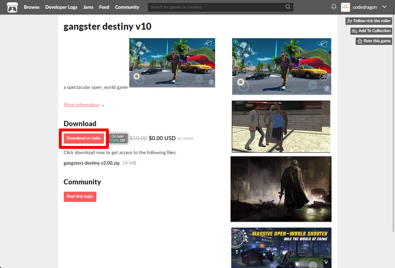 "gangster destiny v10" 페이지에 있는 [Download or claim]을 클릭합니다.
