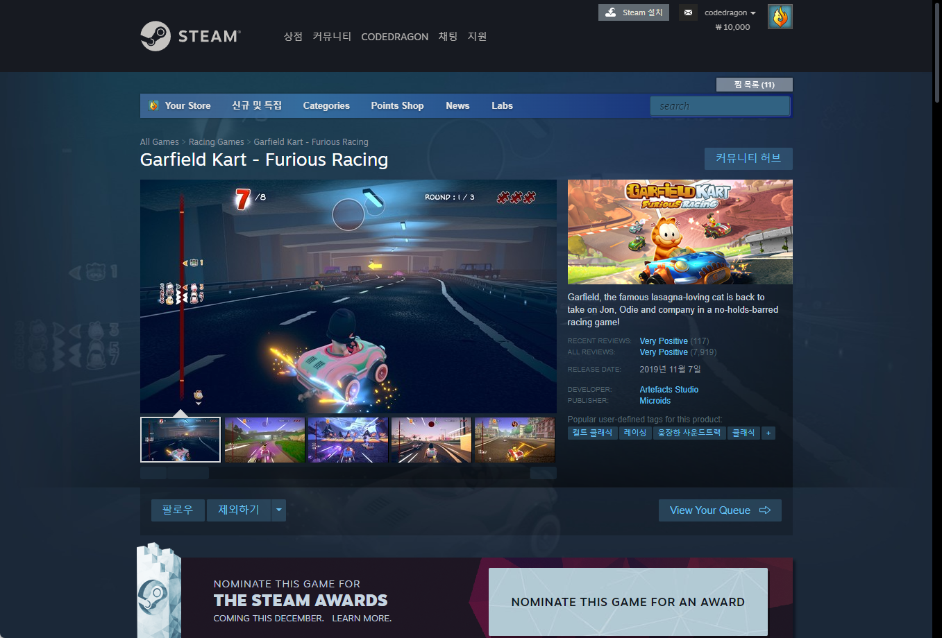 - "Garfield Kart - Furious Racing" - Steam 스팀 게임페이지
